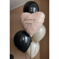Набор включает в себя пять воздушных шаров, каждый из которых имеет свою уникальную функцию. Одно фольгированное сердце пыльно-розового цвета с надписью "Любимому мужу" придаст особую атмосферу праздника. Два черных латексных шара и два латексных шара песочного цвета добавят яркости и контраста.