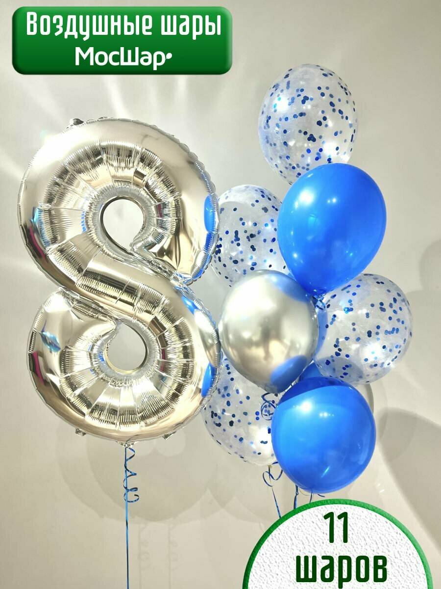 Купить Набор воздушных шаров на день рождения, фольгированная цифра 8 лет с доставкой по всей России.