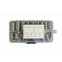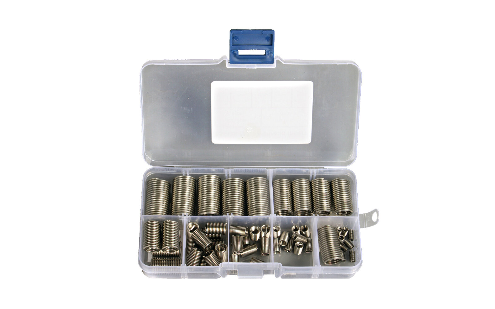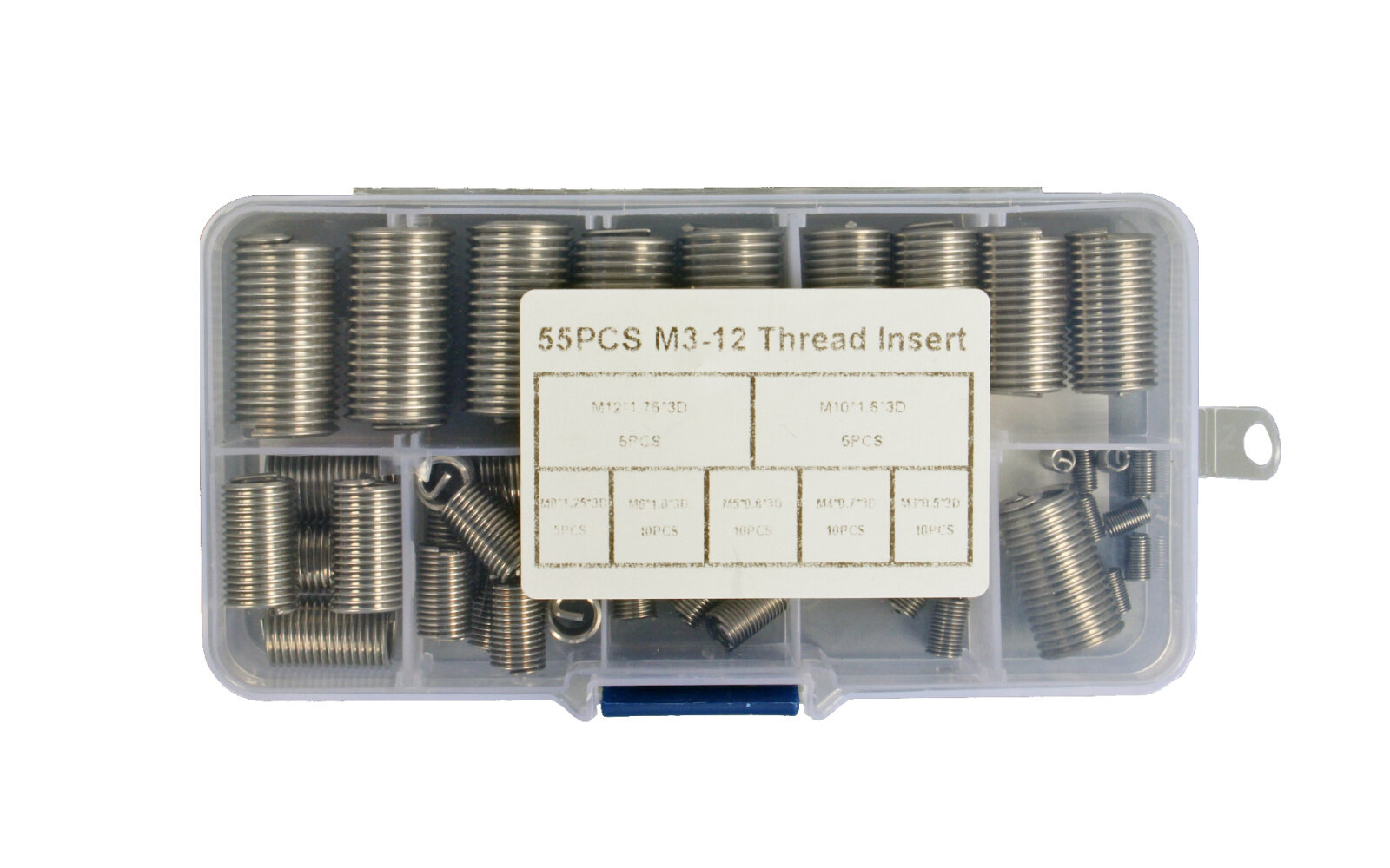 В набор входят: Резьбовая вставка М12х1.75мм - 5 предметов Резьбовая вставка М10х1.5мм - 5 предметов Резьбовая вставка М8х1.25мм - 5 предметов Резьбовая вставка М6х1мм - 10 предметов Резьбовая вставка М5х0.8мм - 10 предметов Резьбовая вставка М4х0.7мм - 10 предметов Резьбовая вставка М3х0.5мм - 10 предметов