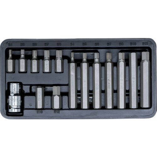 Предназначен для работы с соединениями под шестигранник. Вставки изготовлены из прочной хромованадиевой стали. В комплект входит держатель вставки 1/2DR.