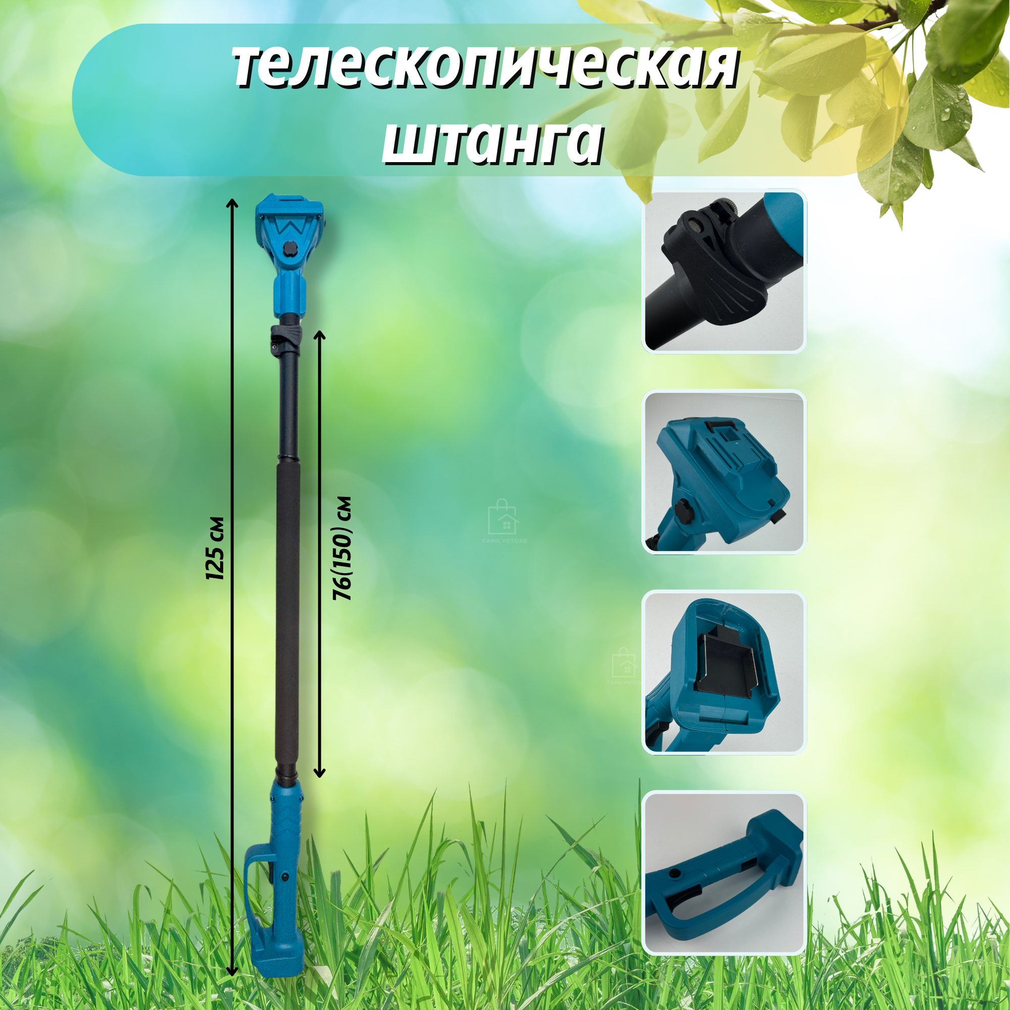 Телескопический аккумуляторный секатор-сучкорез, в комплекте аккумуляторные пила и секатор! В полностью собранном состоянии имеет длину до 2 метров 25 сантиметров. Это позволяет отрезать сучки и ветки на большой высоте. Штангу можно собирать из 2, 3 или 4 звеньев. Тем самым регулируя рабочую высоту, а так же возможно использование пилы и секатора без штанги. Цепная пила с бесщеточным мотором имеет шину длиной около 15 сантиметров. Шина и цепь для пилы идут в комплекте. Секатор способен перерезать ветки до 2см. Напряжение питание аккумуляторов 21 В. В комплекте идут 2 аккумулятора по 2Ач емкостью. Данный инструмент прост в сборке и работе. Надежные соединения штанг обеспечивают длительный срок службы. Внимание! Секатор имеет встроенную систему защиты от случайного нажатия. Что бы его включить необходимо присоединить аккумулятор, нажать снизу кнопку включения - прозвучит звуковой сигнал, после этого пару раз быстро нажать на курок секатора, снова прозвучит звуковой сигнал - секатор готов к работе.