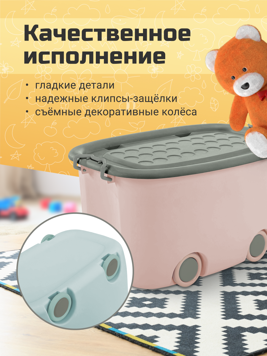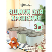 Набор ящиков для хранения игрушек на колесах Homium большой, 3шт (голубой, розовый, коричневый, серая крышка): сравнение цен, характеристики, фото, актуальное наличие и цены.