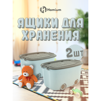 Купить Набор ящиков для хранения на колесах Homium большой, 2шт (голубой с серым) с доставкой по всей России.