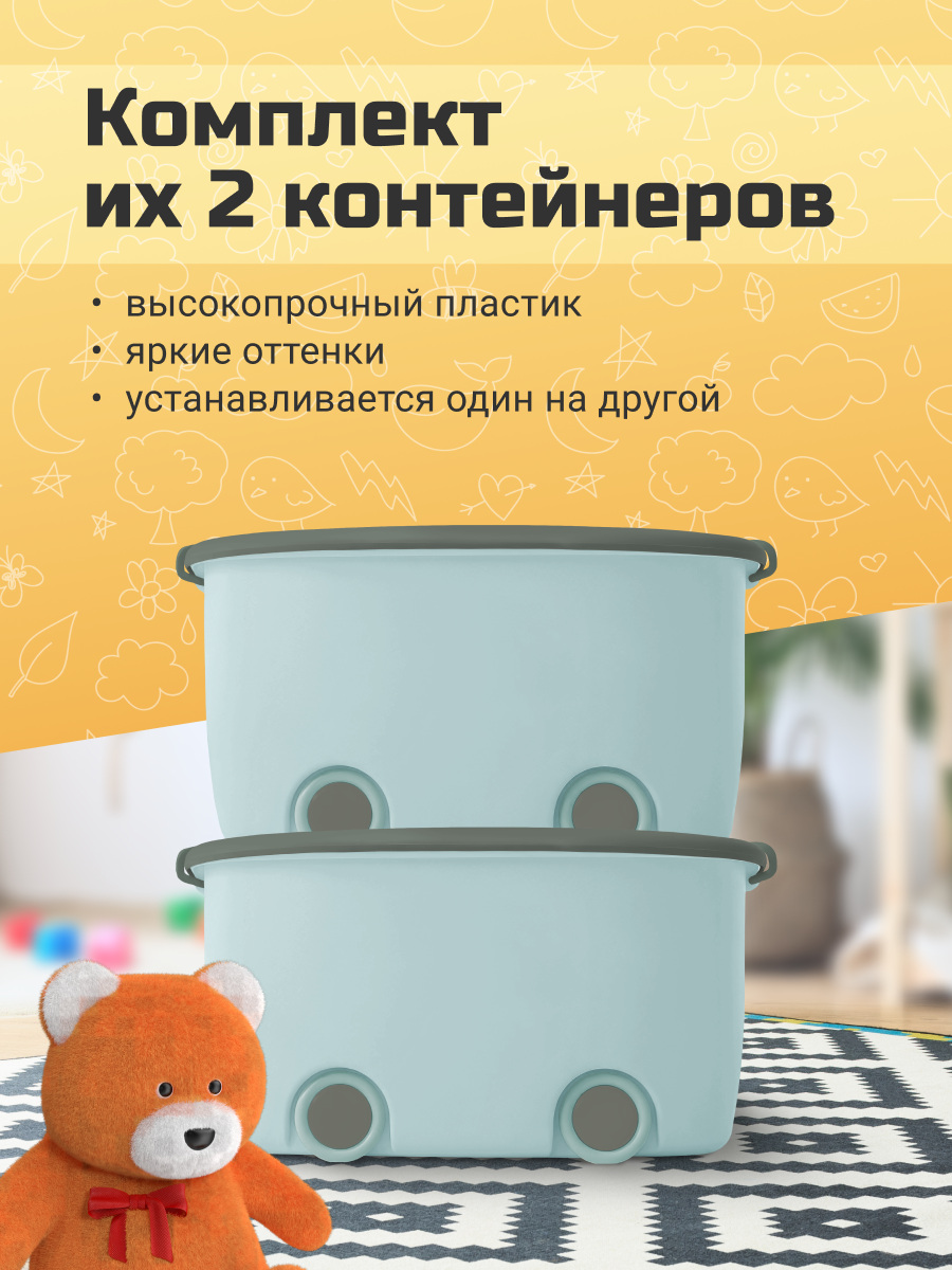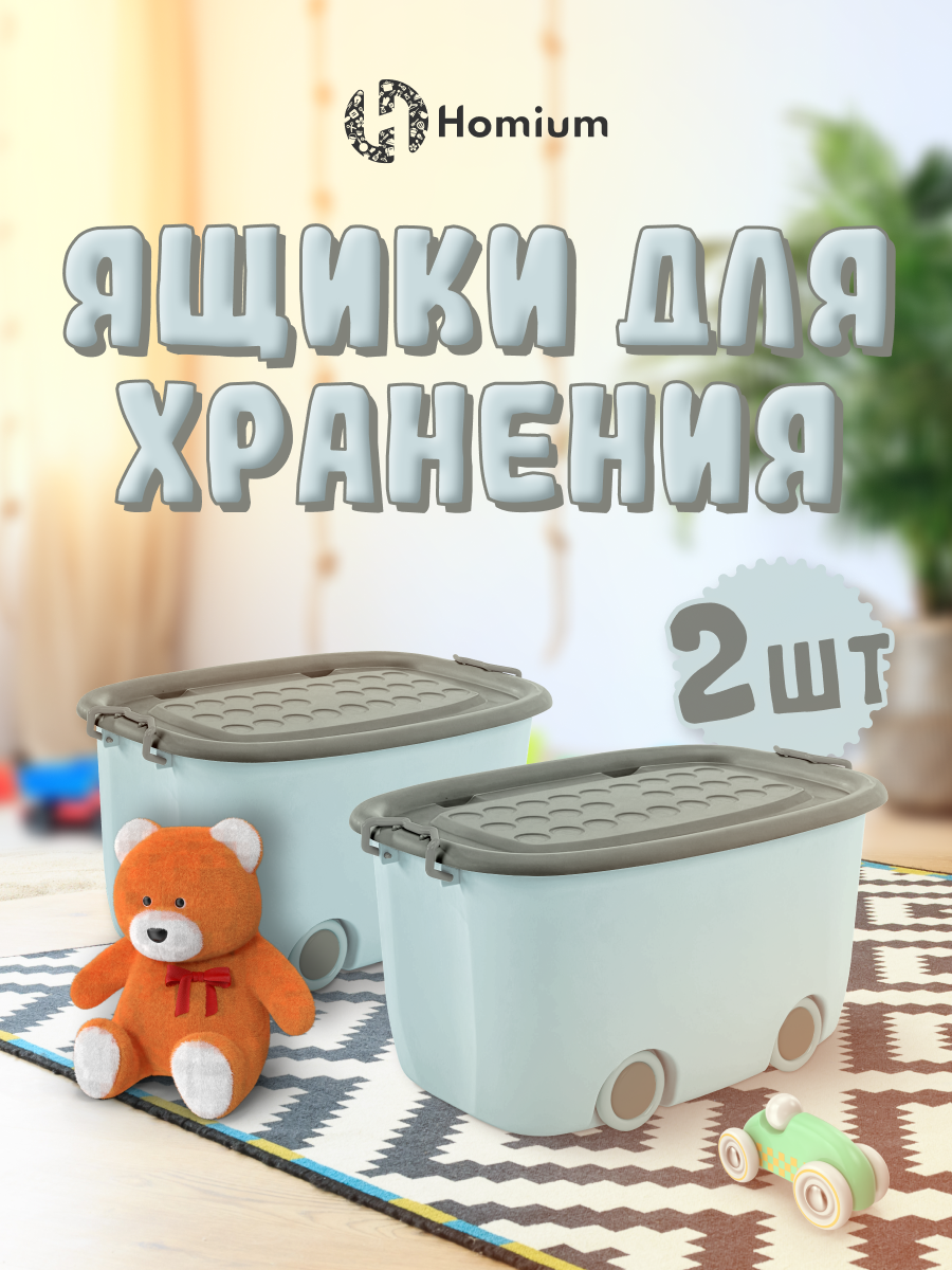 Набор ящиков для хранения на колесах Homium большой, 2шт (голубой с серым): сравнение цен, характеристики, фото, актуальное наличие и цены.