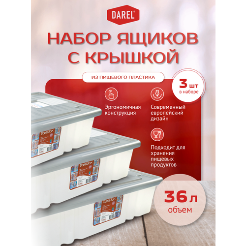 Купить Набор ящиков с крышкой 3 штуки по 36 литров, серый, Darel plastic с доставкой по всей России. Набор ящиков с крышкой 3 штуки по 36 литров, серый, Darel plastic: сравнение цен, характеристики, фото, актуальное наличие и цены.