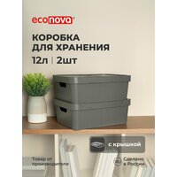 Купить Набор ящиков с крышкой универсальный «LUXE», 38х27,6х14 см, 12л, 2 шт, серый с доставкой по всей России.