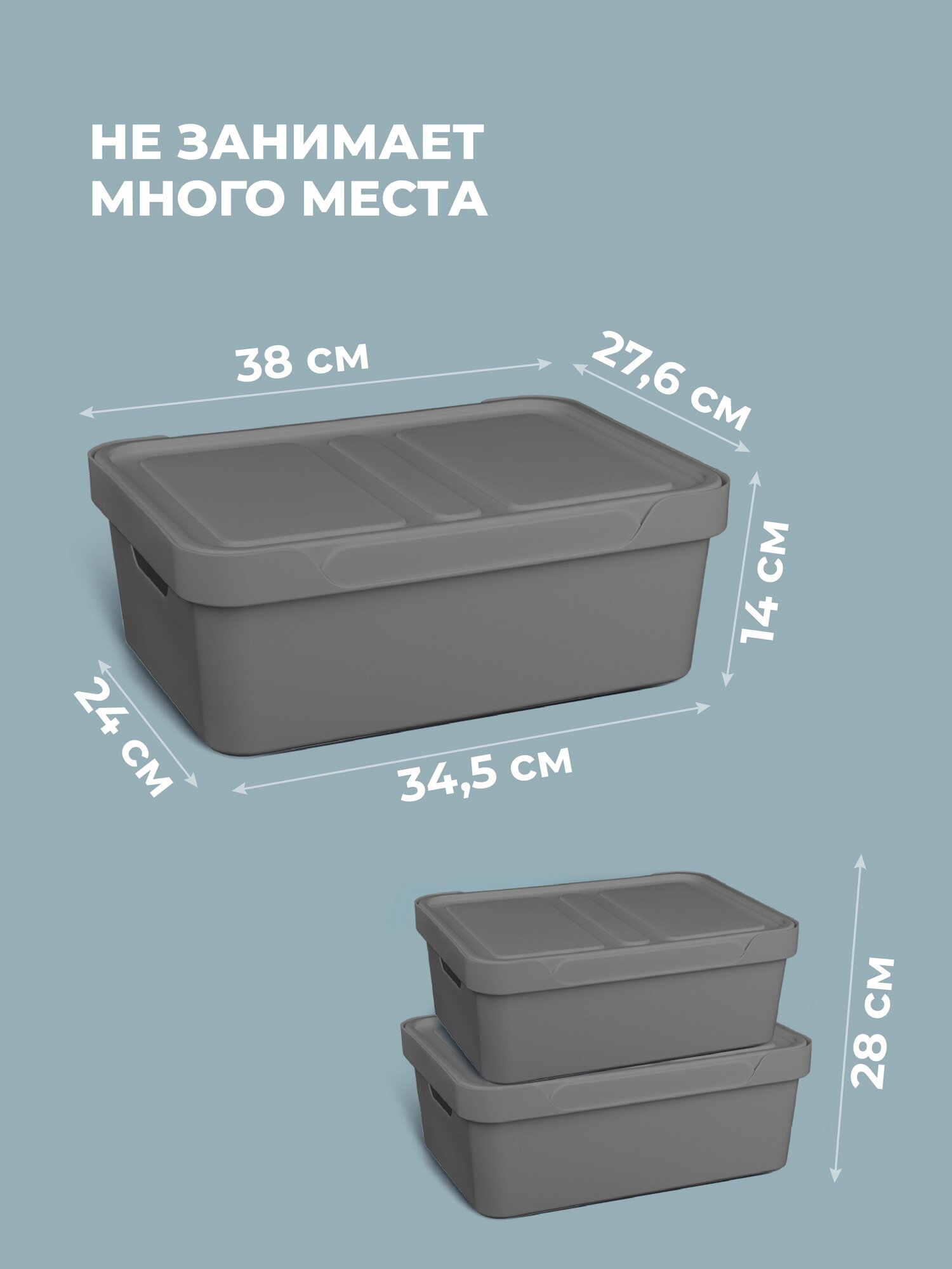 Набор ящиков с крышкой универсальный «LUXE», 38х27,6х14 см, 12л, 2 шт, серый: сравнение цен, характеристики, фото, актуальное наличие и цены.