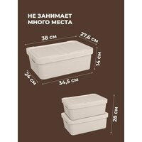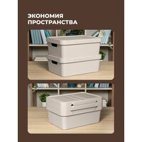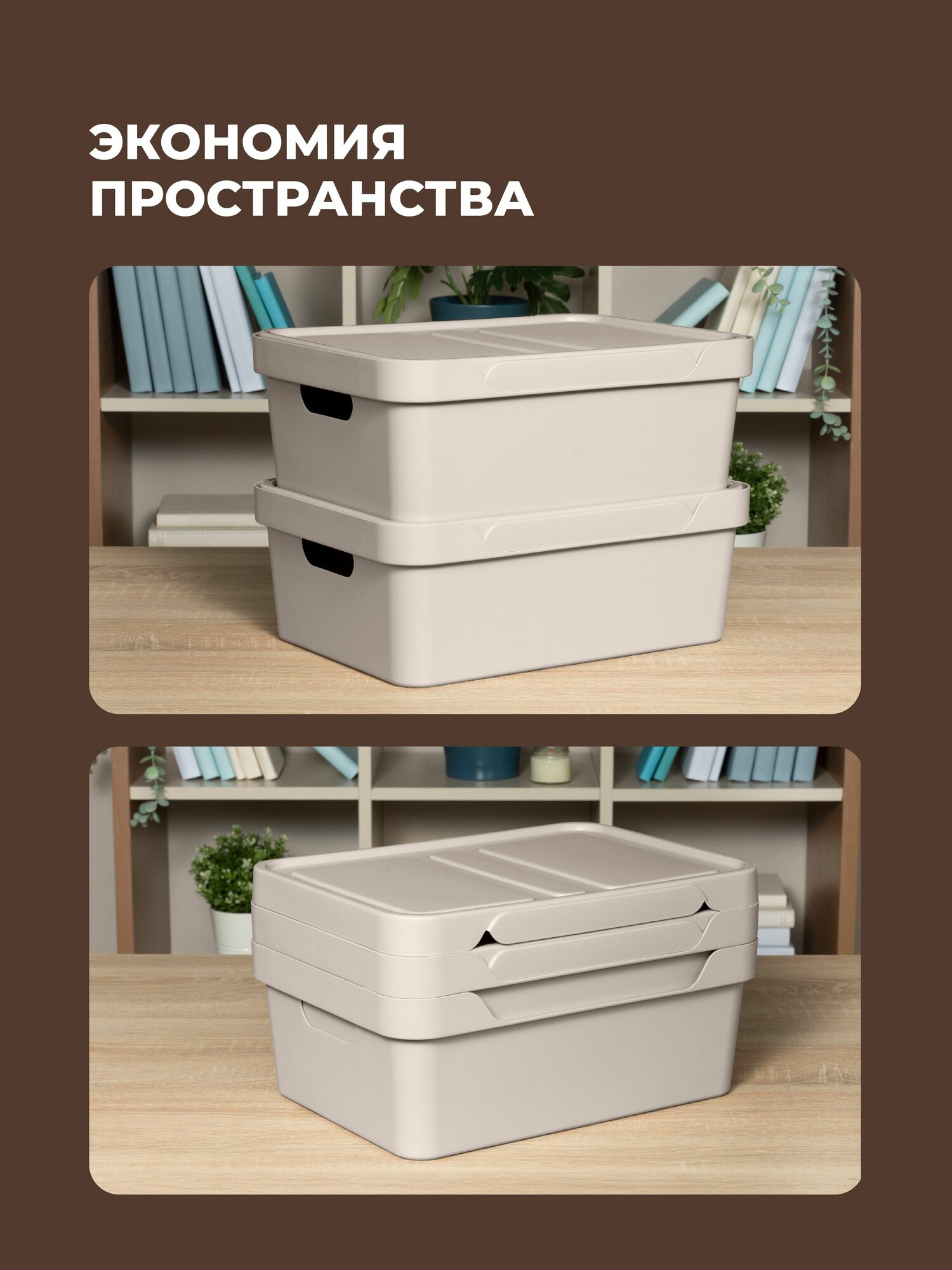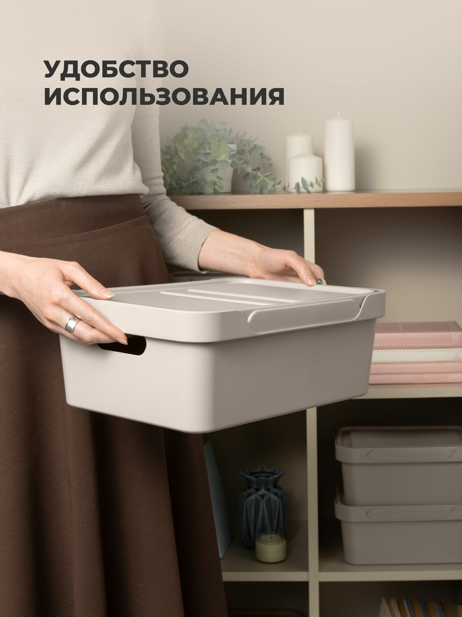 Набор красивых коробов из новой коллекции «Luxe» объемом 12 литров – идеальный помощник в организации хранения дома, офиса, дачи. Многофункциональный, вместительный ящик подходит для применения в любом помещении. В пластмассовом боксе можно хранить много разных предметов: небольшие вещи, одежду, белье, носки, полотенца, всякие канцелярские штучки (канцелярию, канцтовары), аксессуары для творчества, шитья, рукоделия, кухонную утварь, инвентарь, бытовые принадлежности, гаджеты, косметические средства (флаконы, баночки косметики, кремы), инструменты, домашнюю аптечку (лекарства, таблетки), документы. Плоскую корзинку удобно ставить в гардероб, шкаф (шкафчик), шифоньер, комод, тумбу, на этажерку, под кровать, на пол. В кабинете настольный кейс на рабочем месте поместить на стол, полки стеллажа, стенки, мебели. Милый ящичек без острых углов можно использовать в комнате детей под маленькие детские игрушки, конструктор лего (lego). Емкость наведет порядок в прихожей (коридоре), гардеробной, кладовке в стеллажной системе. Тара прямоугольной формы выручит при переезде. Универсальная коробочка пригодится в ванной, туалете, спальне, гостиной, мастерской, на кухне, балконе, в бане. Корпус сундучка прост в уходе. Дизайн кофра в скандинавском (сканди) стиле – модное интерьерное решение квартиры, добавит эстетики, подарит уют интерьеру. Благодаря компактным габаритам (размер: ширина 27,6 см, длина 38 см, высота 14 см) box впишется как эстетичный декор. Изделие российского производителя высокого качества изготовлено из прочного материала, безопасной пластмассы. Крышка защищает от пыли, влаги, запаха. Дает возможность сверху штабелировать другие корзины. Переверните крышечку - она станет полочкой для мелочей. Для переноски хозяйственного лотка - две ручки по бокам. Стильный сундук - практичный подарок на новоселье, праздник. Следите за полезными новинками, скидками, акциями, большими распродажами, самым широким ассортиментом полимерных товаров в каталоге магазина.