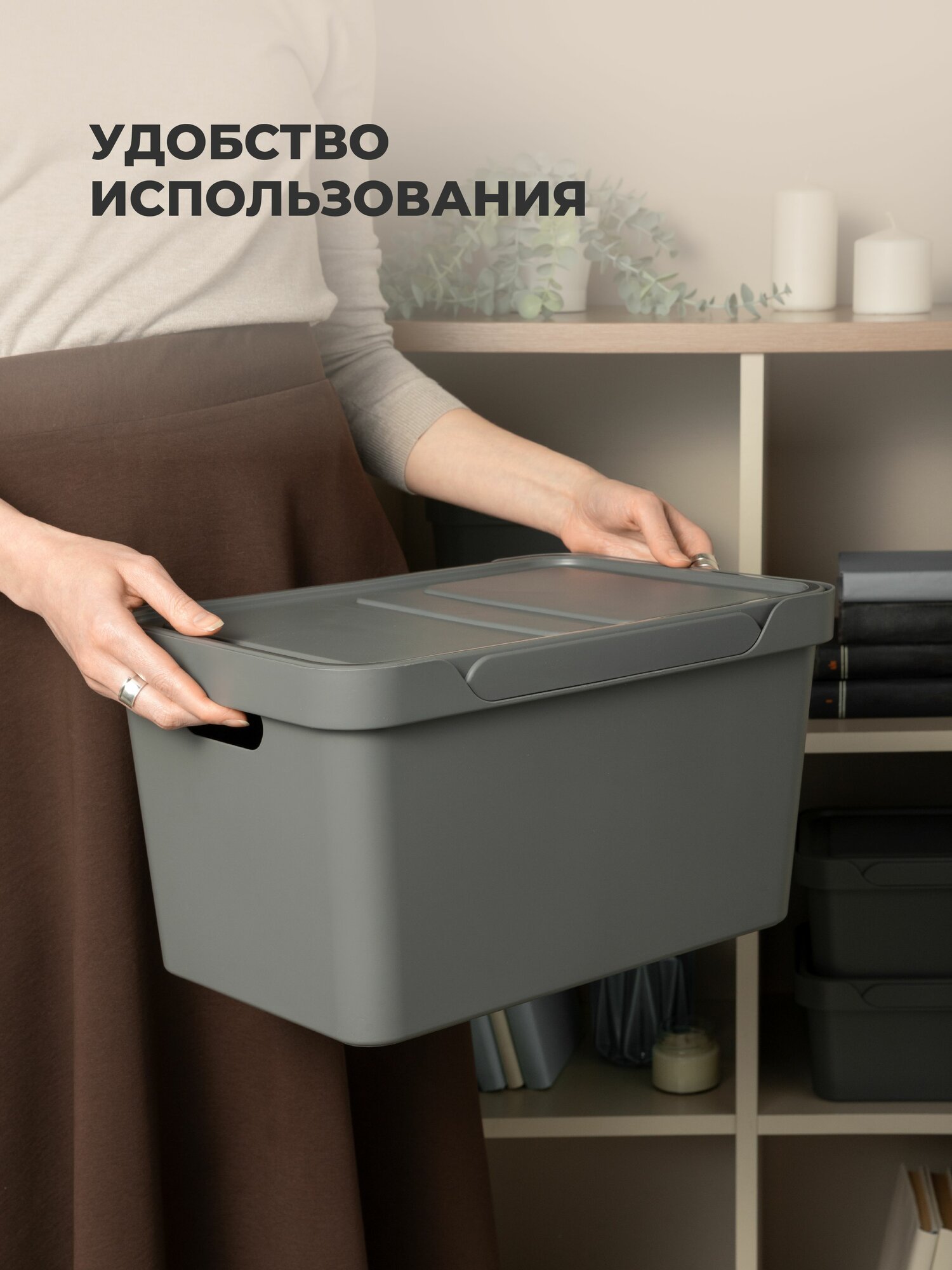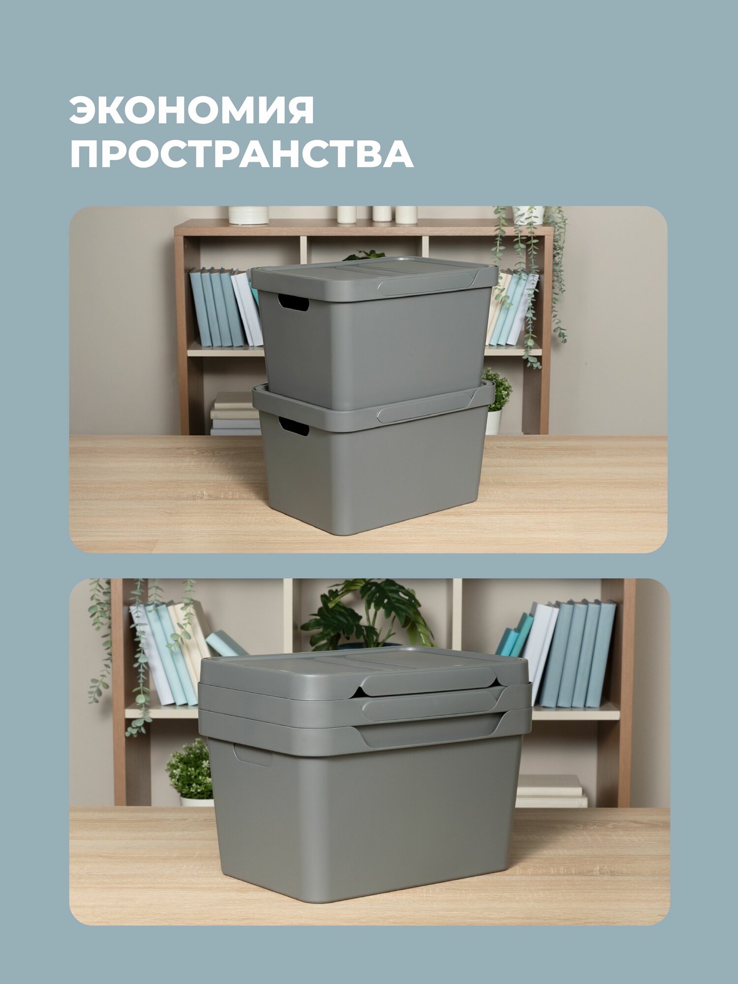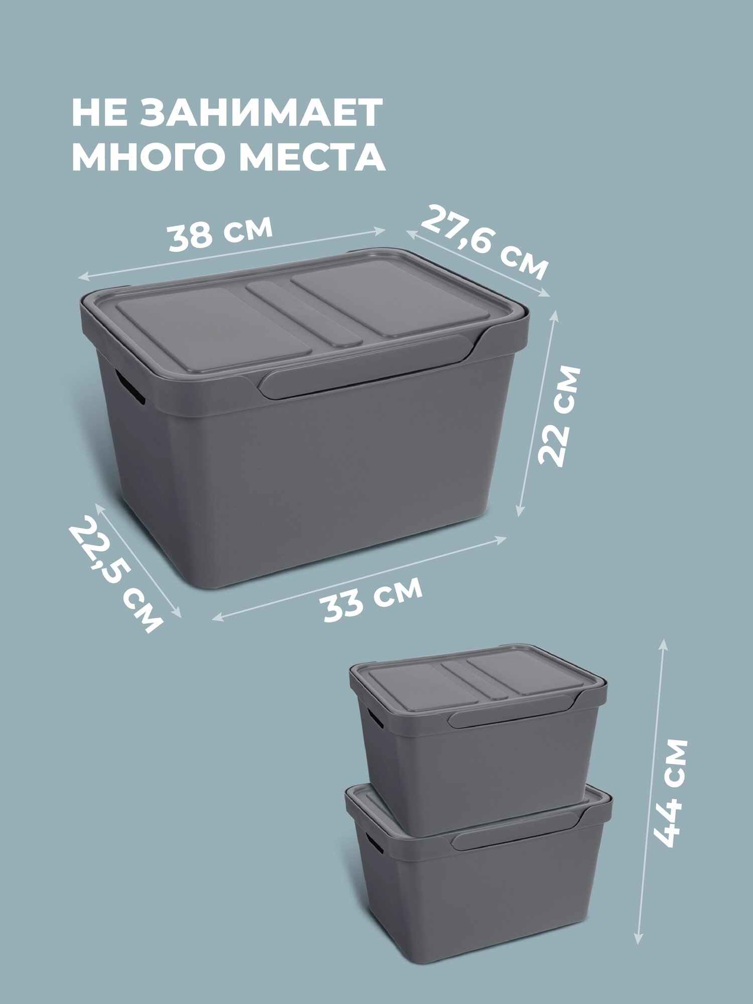 Набор красивых коробов из новой коллекции «Luxe» объемом 18 литров – идеальный помощник в организации хранения дома, офиса, дачи. Многофункциональный, вместительный ящик подходит для применения в любом помещении. В пластмассовом боксе можно хранить много разных предметов: небольшие вещи, одежду, белье, носки, полотенца, всякие канцелярские штучки (канцелярию, канцтовары), аксессуары для творчества, шитья, рукоделия, кухонную утварь, инвентарь, бытовые принадлежности, гаджеты, косметические средства (флаконы, баночки косметики, кремы), инструменты, домашнюю аптечку (лекарства, таблетки), документы. Плоскую корзинку удобно ставить в гардероб, шкаф (шкафчик), шифоньер, комод, тумбу, на этажерку, под кровать, на пол. В кабинете настольный кейс на рабочем месте поместить на стол, полки стеллажа, стенки, мебели. Милый ящичек без острых углов можно использовать в комнате детей под маленькие детские игрушки, конструктор лего (lego). Емкость наведет порядок в прихожей (коридоре), гардеробной, кладовке в стеллажной системе. Тара прямоугольной формы выручит при переезде. Универсальная коробочка пригодится в ванной, туалете, спальне, гостиной, мастерской, на кухне, балконе, в бане. Корпус сундучка прост в уходе. Дизайн кофра в скандинавском (сканди) стиле – модное интерьерное решение квартиры, добавит эстетики, подарит уют интерьеру. Благодаря компактным габаритам (размер: ширина 27,6 см, длина 38 см, высота 22 см) box впишется как эстетичный декор. Изделие российского производителя высокого качества изготовлено из прочного материала, безопасной пластмассы. Крышка защищает от пыли, влаги, запаха. Дает возможность сверху штабелировать другие корзины. Переверните крышечку - она станет полочкой для мелочей. Для переноски хозяйственного лотка - две ручки по бокам. Стильный сундук - практичный подарок на новоселье, праздник. Следите за полезными новинками, скидками, акциями, большими распродажами, самым широким ассортиментом полимерных товаров в каталоге магазина.