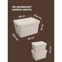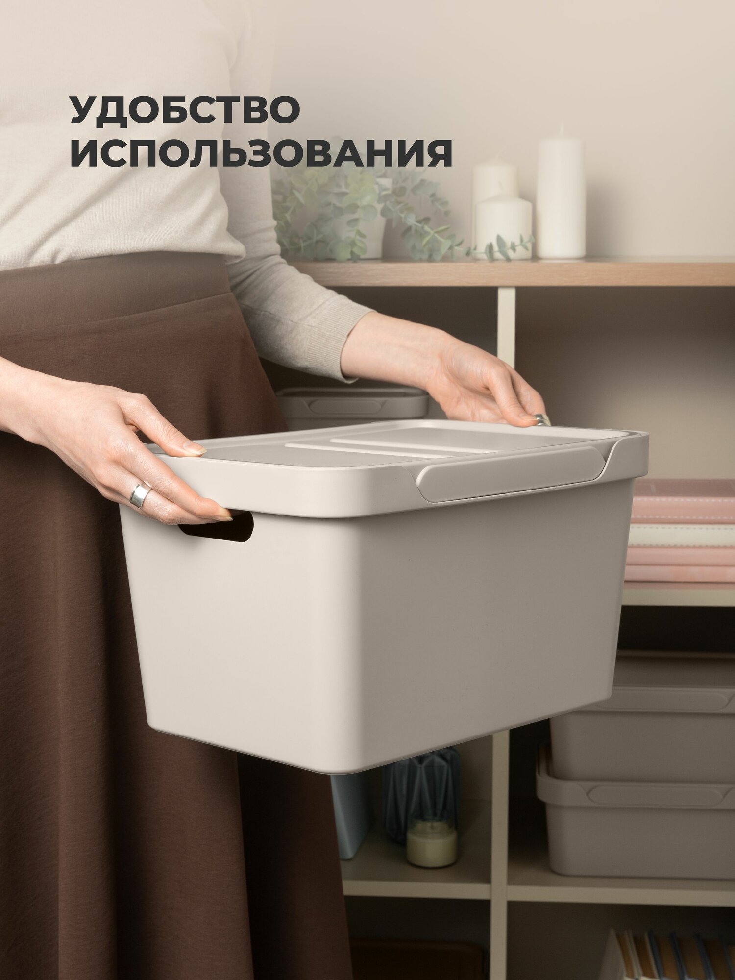 Набор красивых коробов из новой коллекции «Luxe» объемом 18 литров – идеальный помощник в организации хранения дома, офиса, дачи. Многофункциональный, вместительный ящик подходит для применения в любом помещении. В пластмассовом боксе можно хранить много разных предметов: небольшие вещи, одежду, белье, носки, полотенца, всякие канцелярские штучки (канцелярию, канцтовары), аксессуары для творчества, шитья, рукоделия, кухонную утварь, инвентарь, бытовые принадлежности, гаджеты, косметические средства (флаконы, баночки косметики, кремы), инструменты, домашнюю аптечку (лекарства, таблетки), документы. Плоскую корзинку удобно ставить в гардероб, шкаф (шкафчик), шифоньер, комод, тумбу, на этажерку, под кровать, на пол. В кабинете настольный кейс на рабочем месте поместить на стол, полки стеллажа, стенки, мебели. Милый ящичек без острых углов можно использовать в комнате детей под маленькие детские игрушки, конструктор лего (lego). Емкость наведет порядок в прихожей (коридоре), гардеробной, кладовке в стеллажной системе. Тара прямоугольной формы выручит при переезде. Универсальная коробочка пригодится в ванной, туалете, спальне, гостиной, мастерской, на кухне, балконе, в бане. Корпус сундучка прост в уходе. Дизайн кофра в скандинавском (сканди) стиле – модное интерьерное решение квартиры, добавит эстетики, подарит уют интерьеру. Благодаря компактным габаритам (размер: ширина 27,6 см, длина 38 см, высота 22 см) box впишется как эстетичный декор. Изделие российского производителя высокого качества изготовлено из прочного материала, безопасной пластмассы. Крышка защищает от пыли, влаги, запаха. Дает возможность сверху штабелировать другие корзины. Переверните крышечку - она станет полочкой для мелочей. Для переноски хозяйственного лотка - две ручки по бокам. Стильный сундук - практичный подарок на новоселье, праздник. Следите за полезными новинками, скидками, акциями, большими распродажами, самым широким ассортиментом полимерных товаров в каталоге магазина.