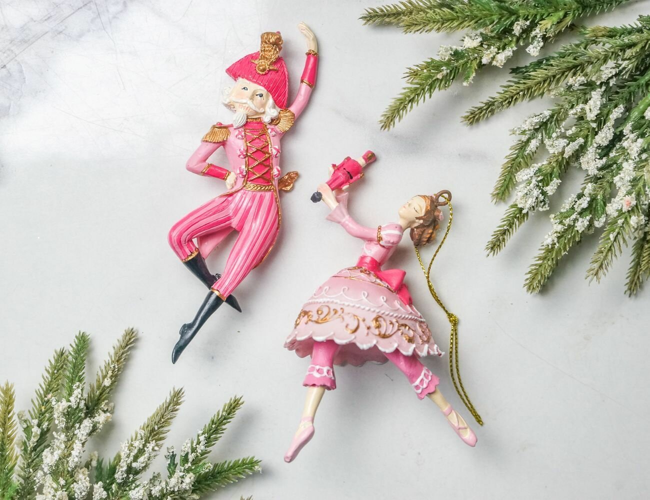 Купить Набор ёлочных игрушек клара И щелкунчик — розовое ПА-ДЕ-ДЕ, полистоун, 13 см, 2 шт, EDG 685313-55-набор с доставкой по всей России.