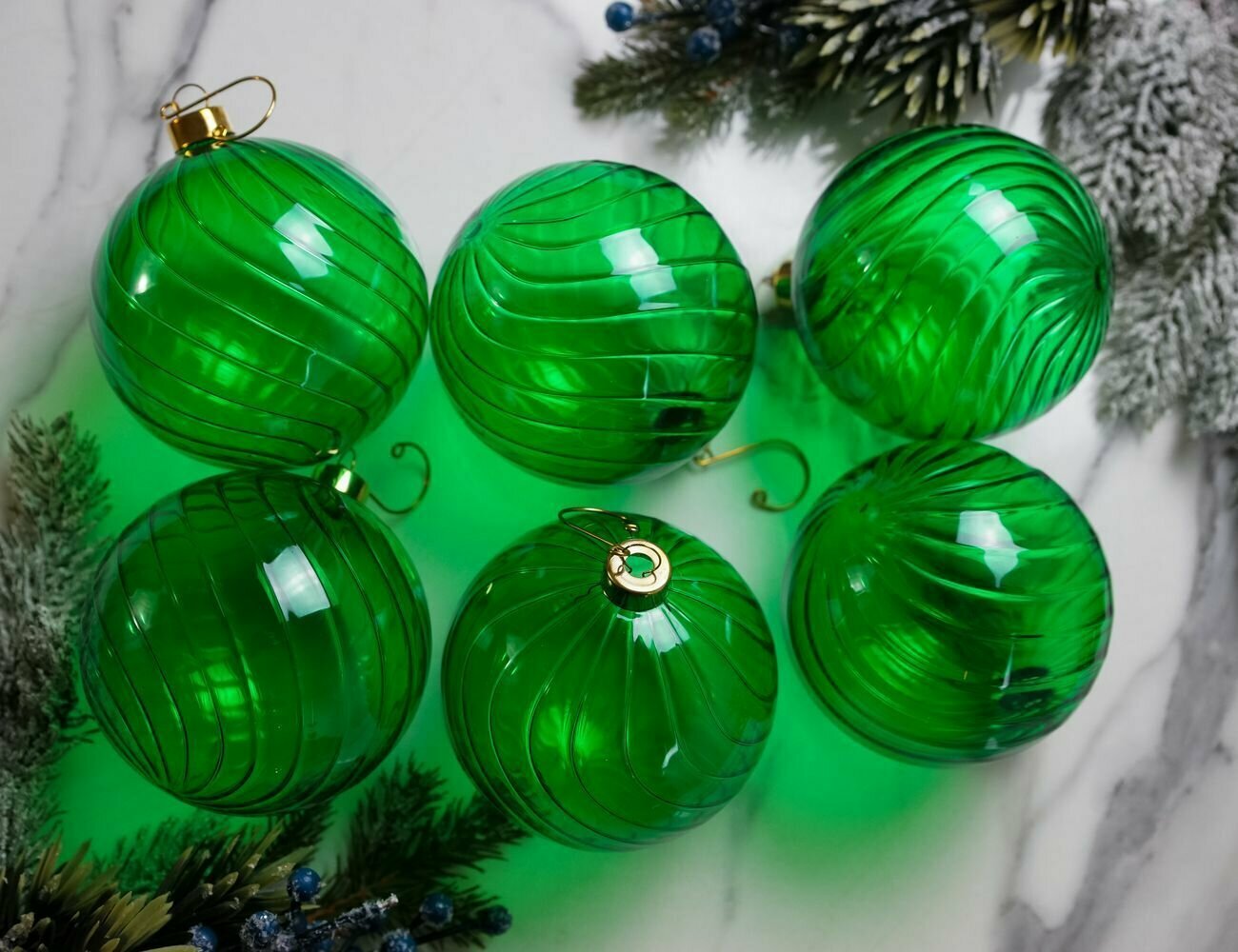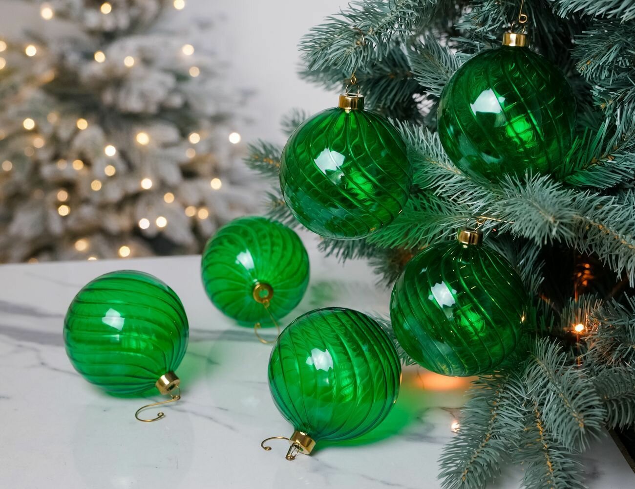 Купить Набор ёлочных шаров антея, стекло, зелёный, 10 см, 6 шт, EDG 687134-70-набор с доставкой по всей России.