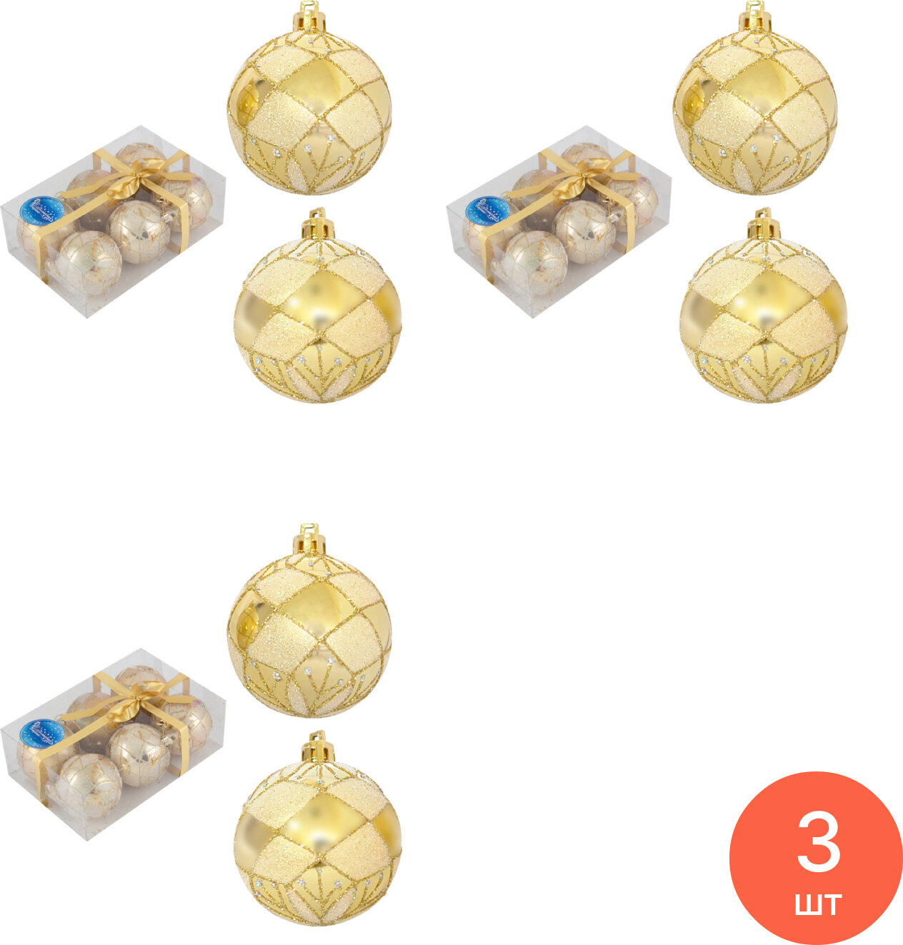 Купить Набор ёлочных шаров Волшебная Страна подвесные, из пластика и полиэстера, золотые с рисунком, диаметр 6см, в упаковке 6шт. / игрушки новогодние (комплект из 3 шт) с доставкой по всей России. Набор ёлочных шаров Волшебная Страна подвесные, из пластика и полиэстера, золотые с рисунком, диаметр 6см, в упаковке 6шт. / игрушки новогодние (комплект из 3 шт): сравнение цен, характеристики, фото, актуальное наличие и цены.