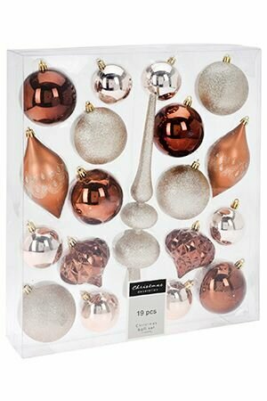Набор ёлочных украшений блестящие традиции, пластик, коричневая гамма, 6-13 см, 19 шт, Koopman International CAN222020: сравнение цен, характеристики, фото, актуальное наличие и цены.
