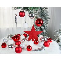 Купить Набор ёлочных украшений из пластика звёздный наряд (красные, белые, серебряные), упаковка 33 шт, Kaemingk 023324 с доставкой по всей России.