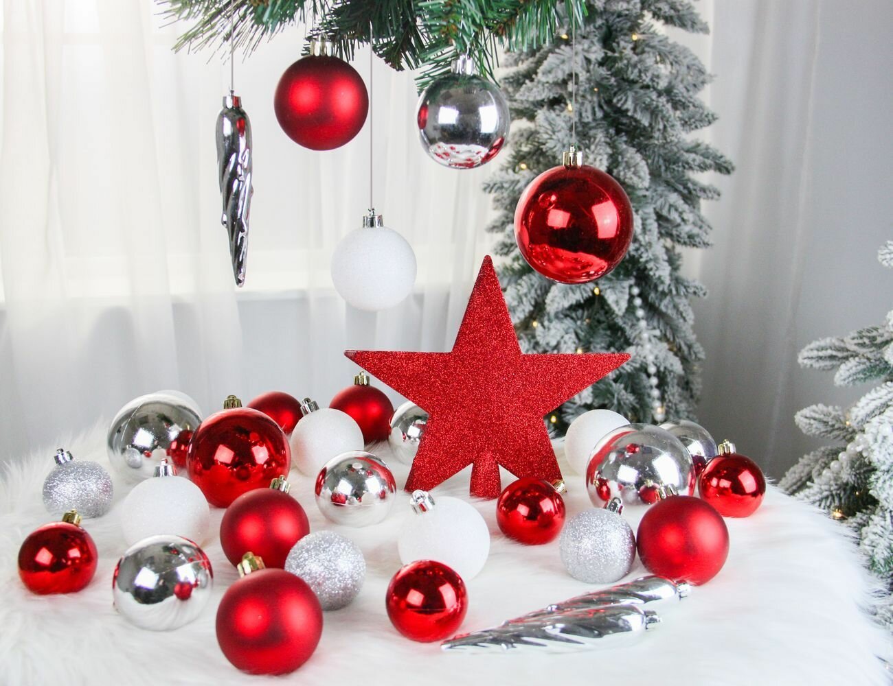 Набор ёлочных украшений из пластика звёздный наряд (красные, белые, серебряные), упаковка 33 шт, Kaemingk 023324: сравнение цен, характеристики, фото, актуальное наличие и цены.