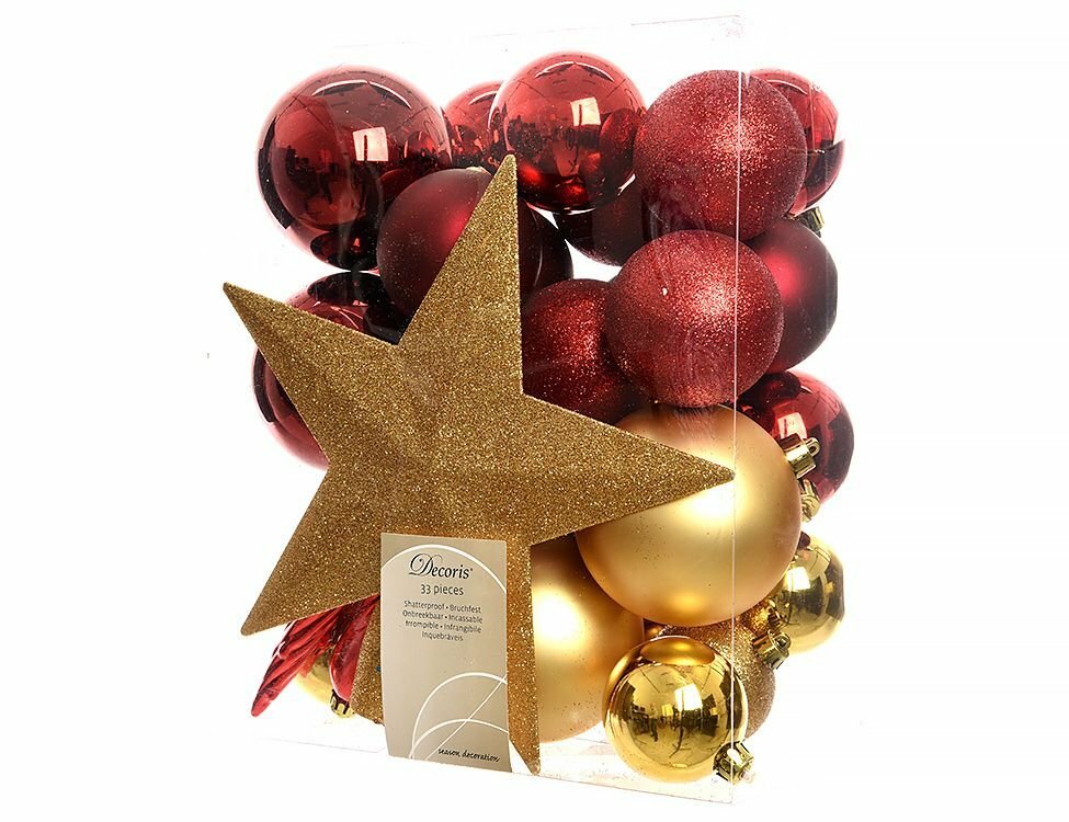 Набор ёлочных украшений из пластика звёздный наряд (красные, золотые, бордовые), упаковка 33 шт, Kaemingk: сравнение цен, характеристики, фото, актуальное наличие и цены.
