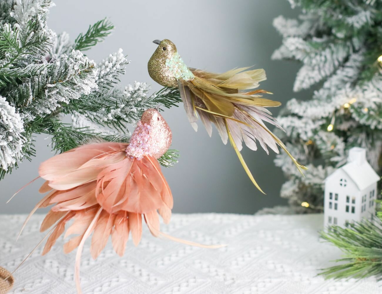 Набор ёлочных украшений птички ‘песни зимнего сада’ на клипсе, перо, персиковый и оливковый, 22 см, 2 шт, Christmas Deluxe 13409: сравнение цен, характеристики, фото, актуальное наличие и цены.