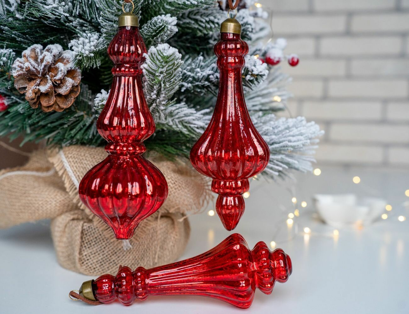 Купить Набор ёлочных украшений веккьяно, стекло, красный, 18 см, 3 шт, Winter Deco 4060369 с доставкой по всей России.
