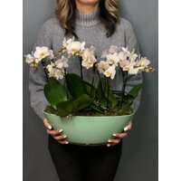 Композиция из орхидей в кашпо "Лодочка": Гармония красоты и изящества. Этот элегантный и оригинальный дизайн принесет в ваш интерьер ноту изыска, экзотики и очарования. Орхидеи - символ элегантности и роскоши. Их уникальные цветы сочных оттенков, изящные стебли и изящные листья создают неповторимую атмосферу притягательности и изыска. Они являются истинным украшением любого пространства и привлекают восхищенные взгляды. Кашпо в форме лодочки - это не только функциональный элемент, но и уникальный предмет декора. Его изящные линии, гладкие поверхности и элегантные изгибы придают композиции особый шарм и создают атмосферу стиля и оригинальности. Орхидеи - довольно неприхотливые растения. Они требуют умеренного полива и яркого, но разбросанного света. Предоставьте им комфортные условия с температурой от 18°C до 24°C, и они будут радовать вас своим прекрасным цветением на протяжении долгого времени. Орхидеи излучают нежный аромат, создавая атмосферу уюта и релаксации. Подарок, который оставит незабываемое впечатление. Композиция из орхидей в кашпо "Лодочка" - это не только украшение для вашего дома или офиса, но и прекрасный подарок для особого человека. Она будет символом вашего вкуса, заботы и внимания. Подарите эту композицию и оставьте незабываемое впечатление родным и близким.