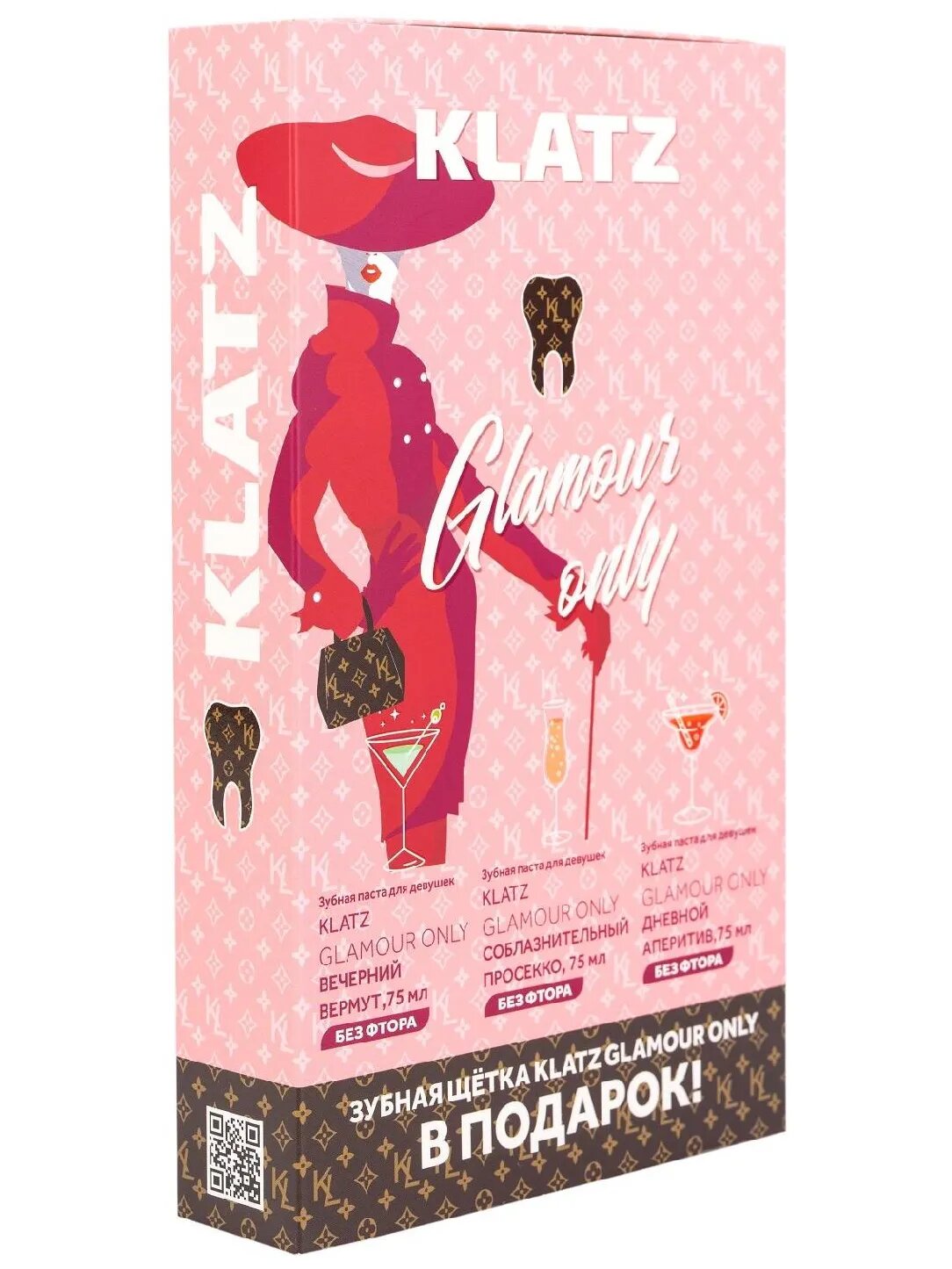 Купить Набор зубных паст с щеткой Klatz GLAMOUR ONLY, 3х75мл, щетка зубная для взрослых средняя с доставкой по всей России.