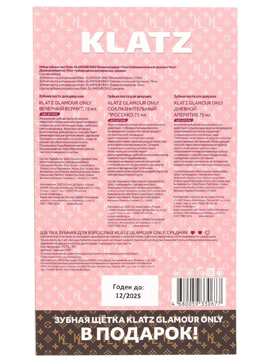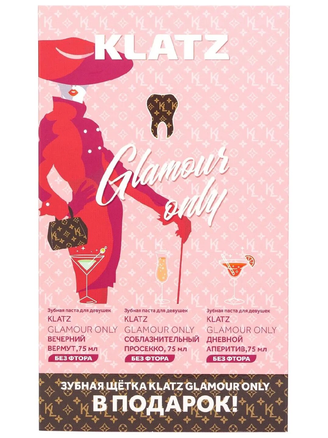 Набор зубных паст с щеткой Klatz GLAMOUR ONLY, 3х75мл, щетка зубная для взрослых средняя: сравнение цен, характеристики, фото, актуальное наличие и цены.