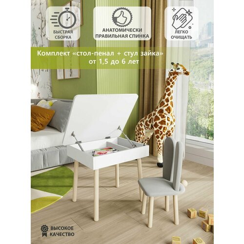 Стол пенал с открывной столешницей и стул "зайка ". Стол уже собран на 90% и поэтому сборка займет несколько минут. Подходит для детей от 1,5 лет и до 6лет. В подстолье столешницы есть ниша под канцелярию и разные раскраски, книжки. Столешница столика, сиденье и спинка стульчика сделаны из безопасного материала класса Е1, ножки из массива берёзы, гладкие, без покрытия. Углы столешницы закруглены и закрыты мягким мебельным кантом, подстолье обработано в кромке. Высота детского стола 52 см, размер столешницы 50х60 см. Высота детского стульчика 59 см (вместе со спинкой). Высота от пола до сиденья - 28 см. Удобно будет сидеть детям за данным комплектом ростом до 130 см. Детский стул и стол, комплект детской мебели, детская мебель, стол-пенал, детский стол пенал. Цвет изделия может отличаться оттенком.