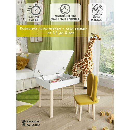 Стол пенал с открывной столешницей и стул "островок". Стол уже собран на 90% и поэтому сборка займет несколько минут. Подходит для детей от 1,5 лет и до 6лет. В подстолье столешницы есть ниша под канцелярию и разные раскраски, книжки. Столешница столика, сиденье и спинка стульчика сделаны из безопасного материала класса Е1, ножки из массива берёзы, гладкие, без покрытия. Углы столешницы закруглены и закрыты мягким мебельным кантом, подстолье обработано в кромке. Высота детского стола 52 см, размер столешницы 50х60 см. Высота детского стульчика 59 см (вместе со спинкой). Высота от пола до сиденья - 28 см. Удобно будет сидеть детям за данным комплектом ростом до 130 см. Детский стул и стол, комплект детской мебели, детская мебель, стол-пенал, детский стол пенал.