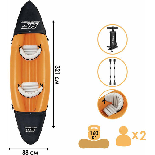 Надувная Байдарка Lite-Rapid X2 Kayak, 2 местная, 2 надувных съёмных сидения, съёмный плавник, 2 двухлопастных алюминиевых весла, леерный трос, вёсла 218 см, до 160 кг, 321 х 88 х 48 см, Bestway: сравнение цен, характеристики, фото, актуальное наличие и цены.