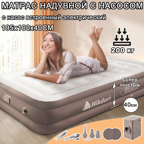 Купить Надувная кровать Hikdori, односпальная, с подголовником и электрическим насосом с доставкой по всей России.
