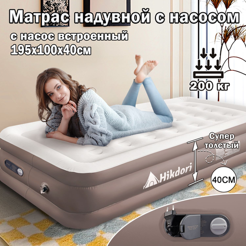 Купить Надувная кровать Hikdori, односпальная, с подголовником и электрическим насосом, бежевая с доставкой по всей России.