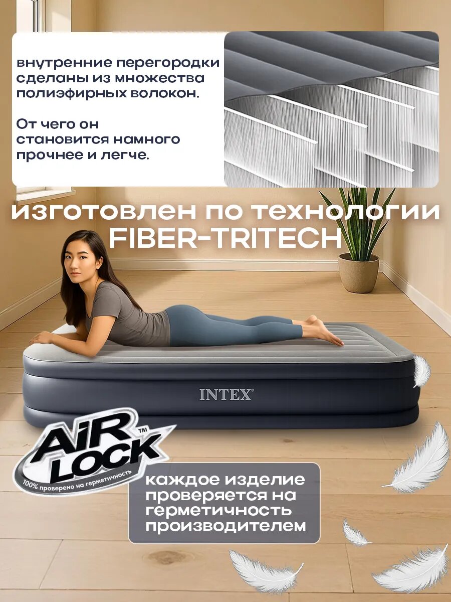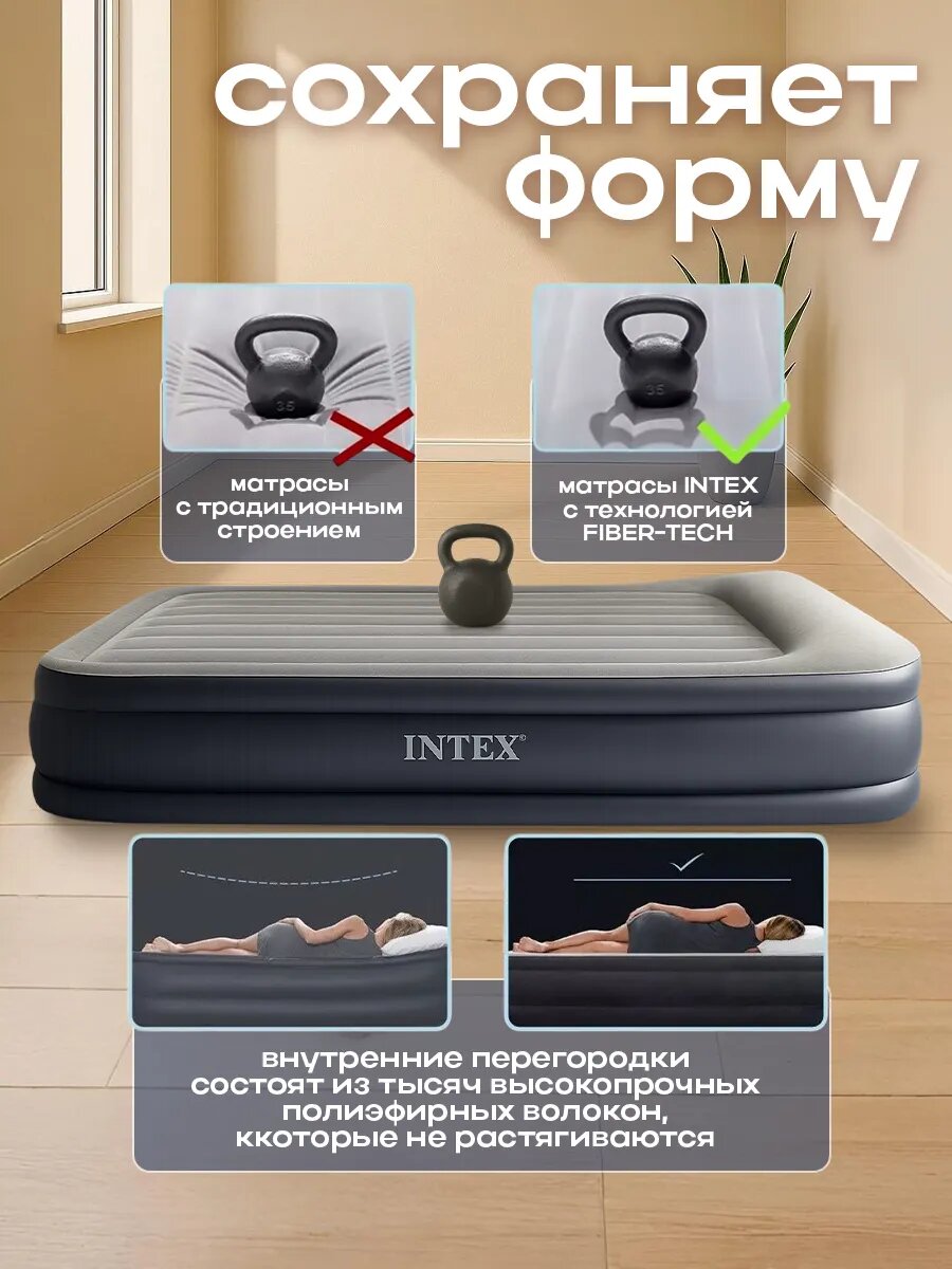 Надувная кровать Intex Dura Beam, флокированная, со встроенным насосом, серая, 191х99х42 см: сравнение цен, характеристики, фото, актуальное наличие и цены.