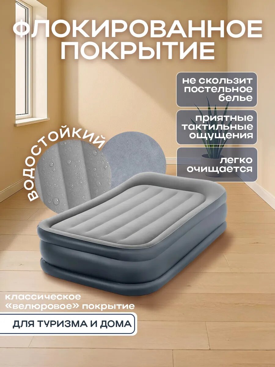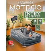 Купить Надувная кровать Intex Dura Beam, флокированная, со встроенным насосом, серая, 191х99х42 см с доставкой по всей России.