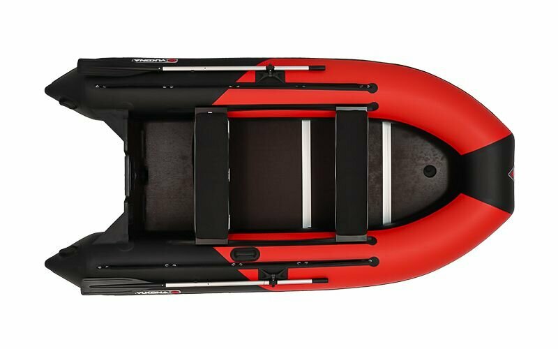 надувная лодка 1 шт., секционный влагостойкий фанерный 9 мм пайол со стрингерами 1 компл., жесткое сиденье 2 шт., мягкая подушка сиденья 2 шт., подседельная сумка 1 шт., ножной насос 1 шт., весло 2 шт., сумка для переноски 1 шт., транец стационарный встроенный 1 шт., ремонтный комплект (клей, ПВХ материал, ключ) 1 шт., руководство по эксплуатации 1 шт.