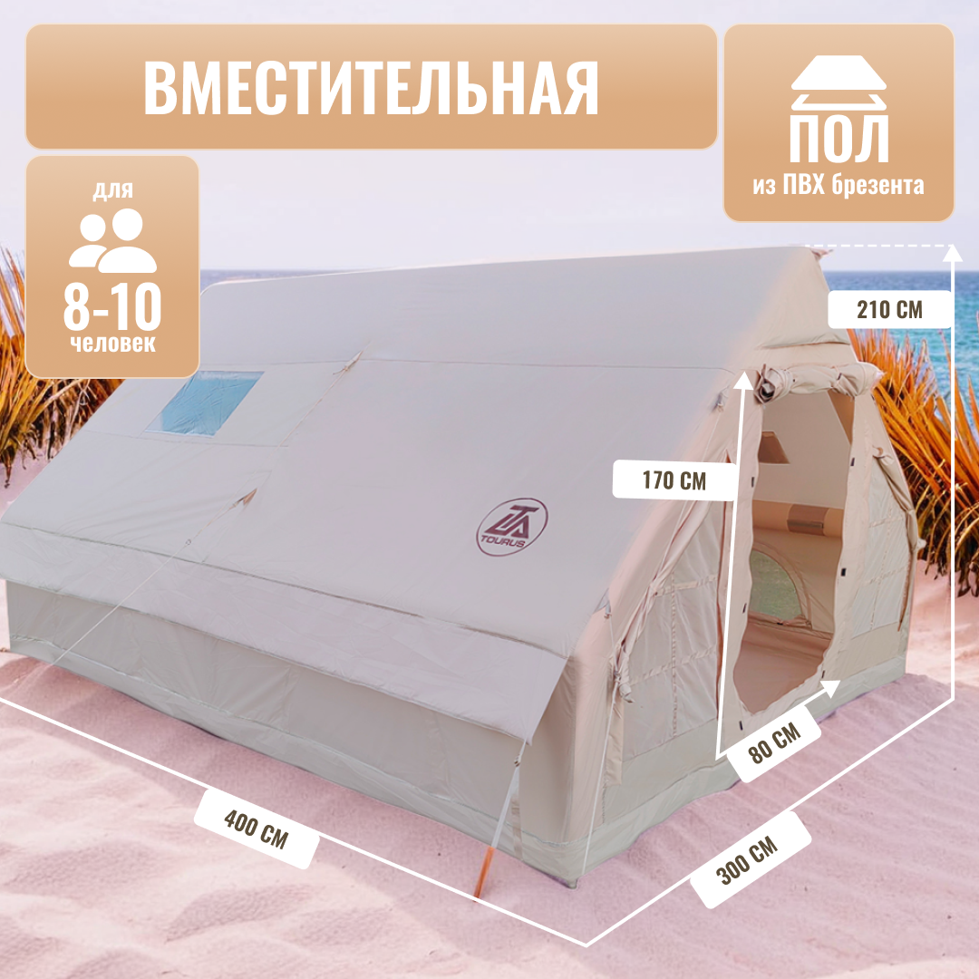 Купить Надувная палатка 10-местная Tourus Inflatable Camping Tent 400×300×210cm Beige TS-IT08 с доставкой по всей России.