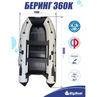Купить Надувная, под мотор, килевая лодка из ПВХ для рыбалки Bering (Беринг) 360К пол-книжка с доставкой по всей России.
