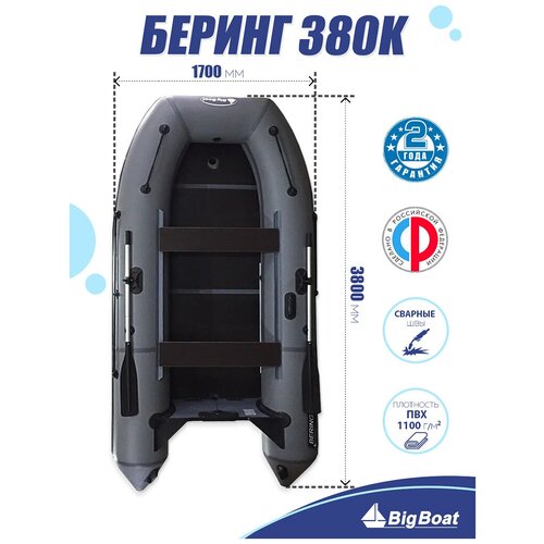 Купить Надувная, под мотор, килевая лодка из ПВХ для рыбалки Bering (Беринг) 380К пол-книжка с доставкой по всей России.