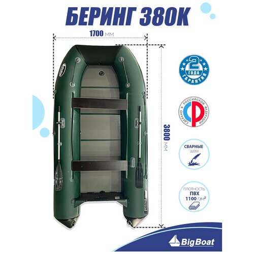 Купить Надувная, под мотор, килевая лодка из ПВХ для рыбалки Bering (Беринг) 380К пол-книжка с доставкой по всей России.