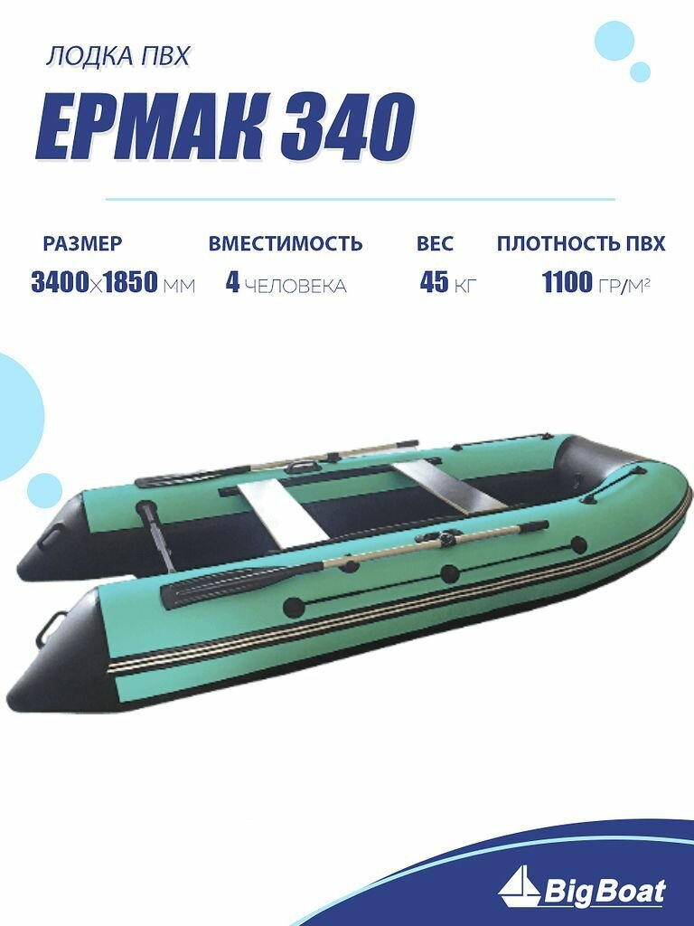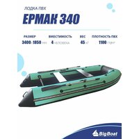 Лодка Ermak 340 является транцевой лодкой с габаритными размерами 3400х1850 мм и диаметром бортовых баллонов 500 мм. Грузоподъемность этой лодки до 500 кг. Конструкция лодки предусматривает наличие 3 независимых надувных отсеков, которые позволяют сохранить плавучесть лодки даже при аварийном проколе 2 из них