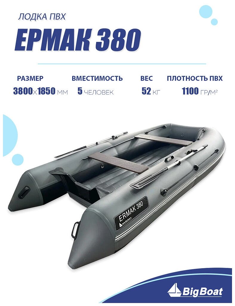 Купить Надувная, под мотор, лодка из ПВХ для рыбалки НДНД Ermak (Ермак) 380 с доставкой по всей России.