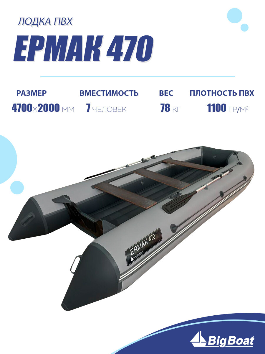 Купить Надувная, под мотор, лодка из ПВХ для рыбалки НДНД Ermak (Ермак) 470 с доставкой по всей России.