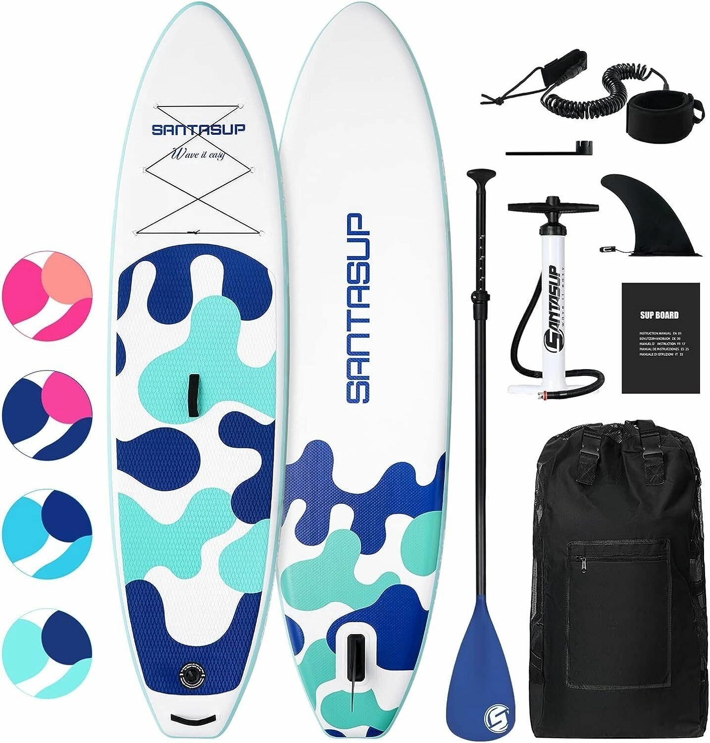 Купить Надувная SUP-доска (SUP board) SantaSup 10’6″ c веслом и насосом / двухслойный /320х81х15 см / для новичков с доставкой по всей России.