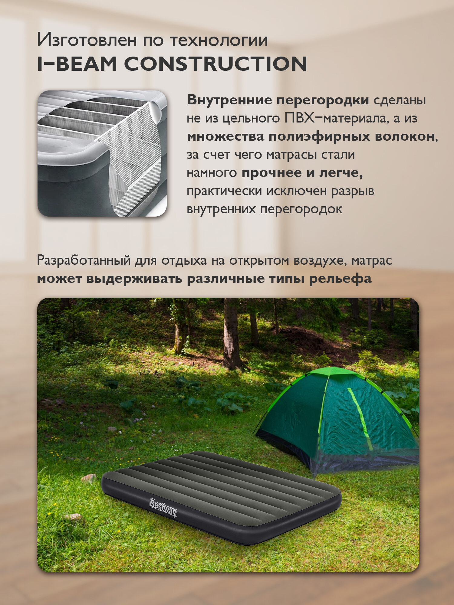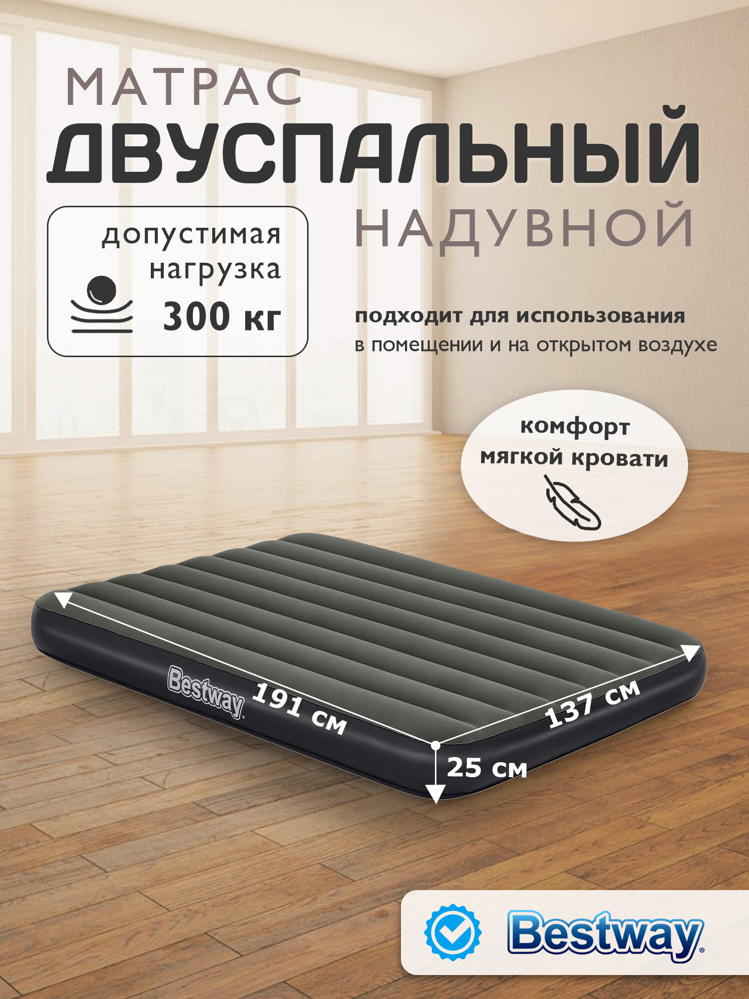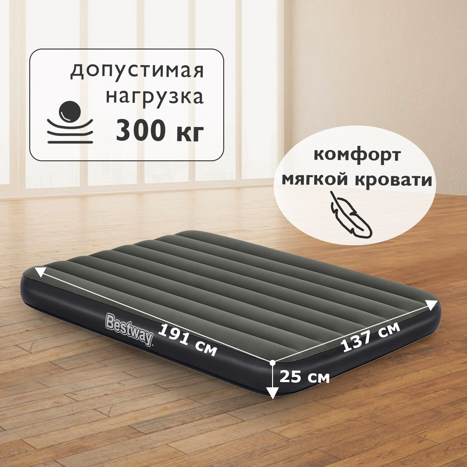 надувной матрас Bestway Tritech Air Mattress Full, размер 191x137x25 см, максимальная грузоподъемность 300 кг, изготовлен из прочного ПВХ, подходит для внутреннего и наружного использования, легко надувается и сдувается благодаря 2-ходовому клапану