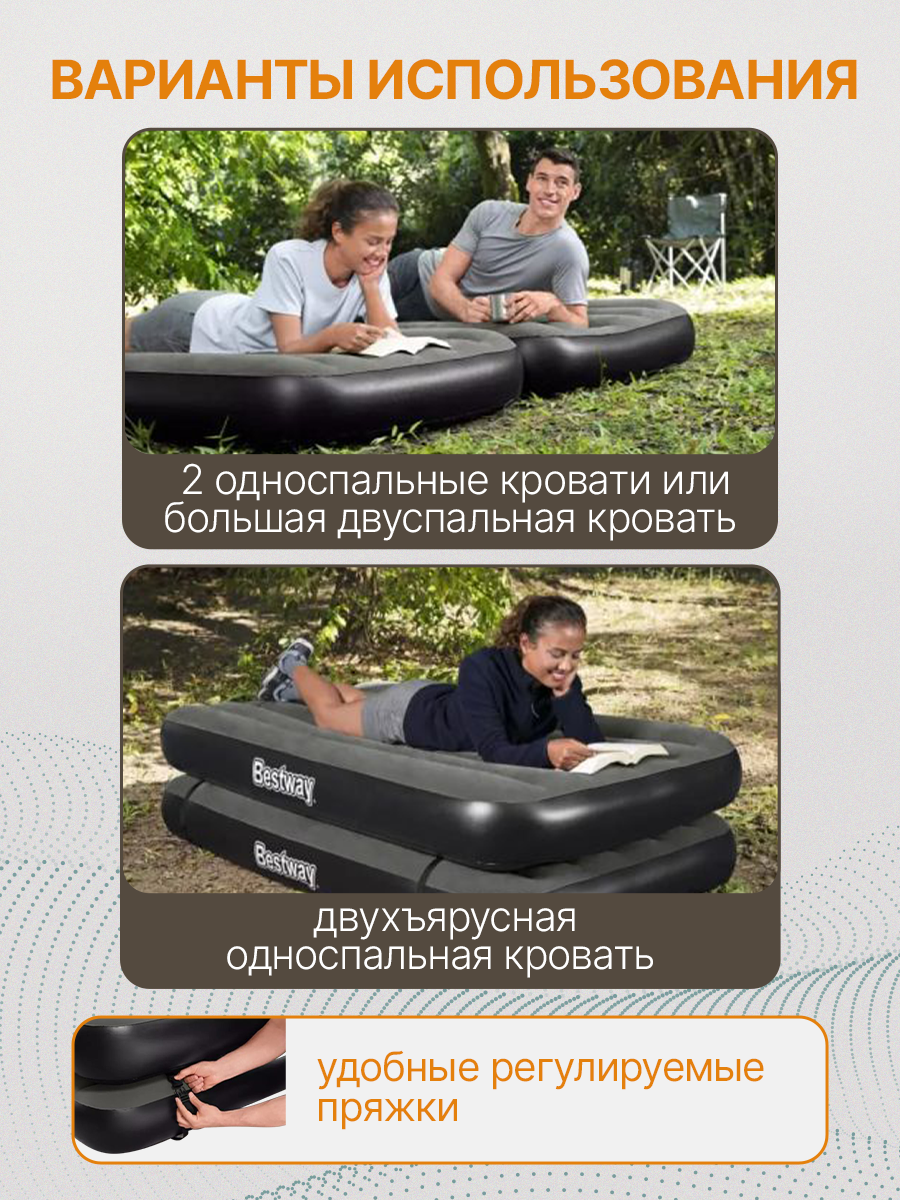 Купить Надувной матрас Bestway «Коннэкт 3в1 Кинг» 188х99х25 см, 2 матраса с ремешком, флокированные, темно-зеленые с доставкой по всей России.