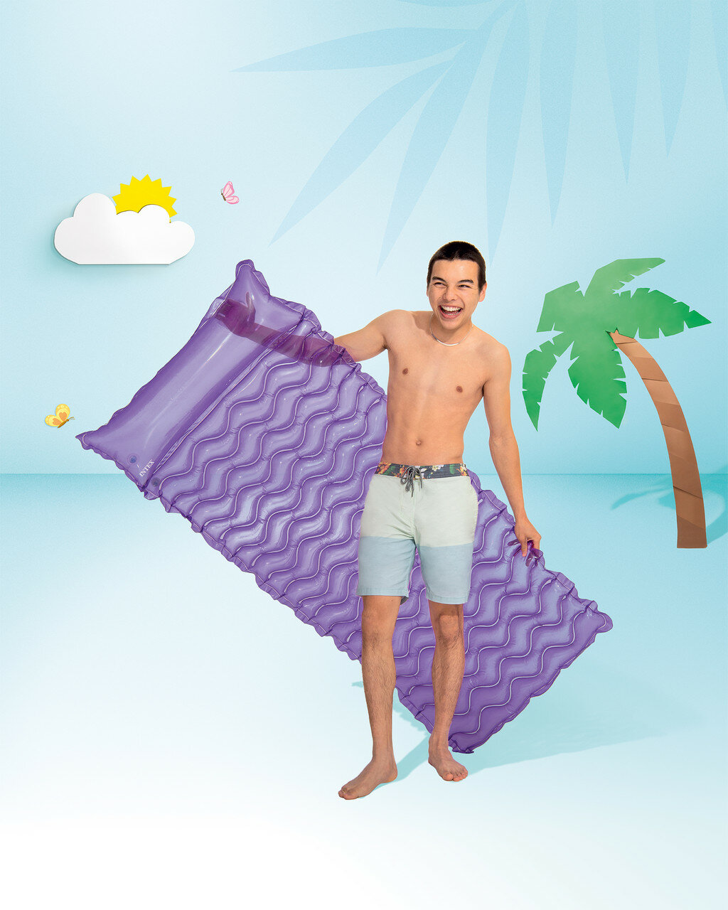 Надувной матрас для плавания 229х86см с подголовником, Intex 58807 до 100кг Фиолетовый: сравнение цен, характеристики, фото, актуальное наличие и цены.