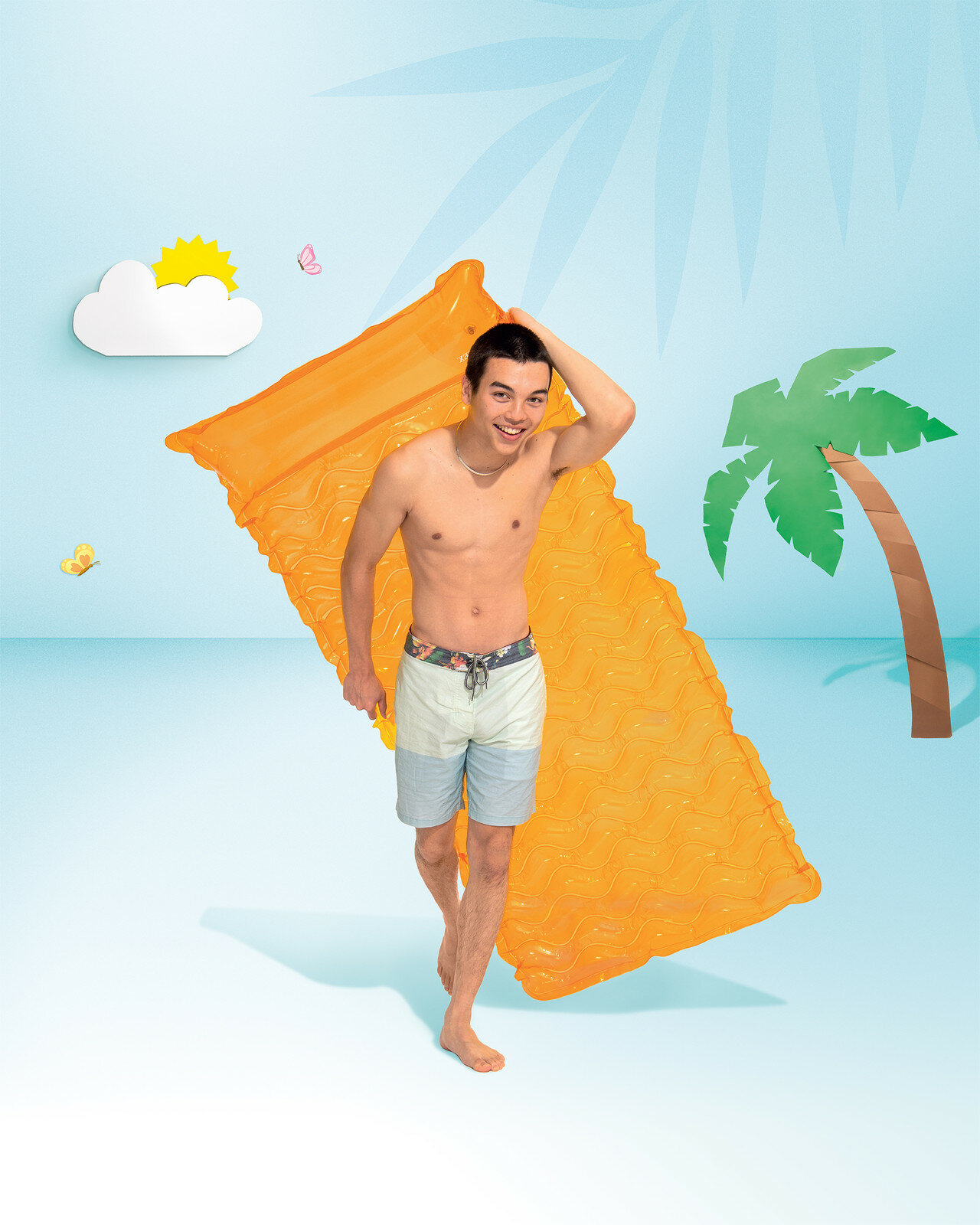 Надувной матрас для плавания 229х86см с подголовником, Intex 58807 до 100кг Оранжевый: сравнение цен, характеристики, фото, актуальное наличие и цены.