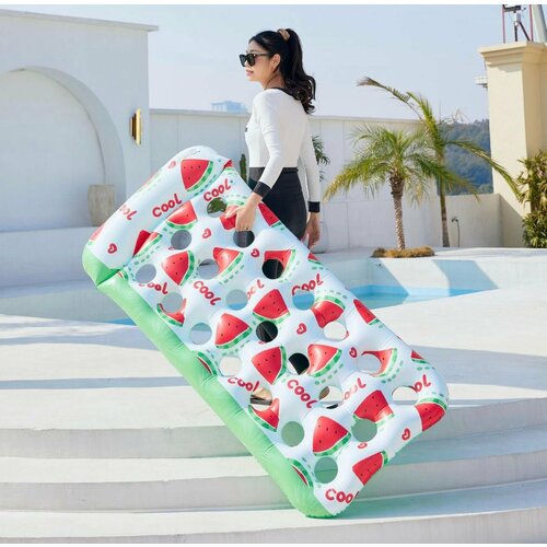 Изготовленный из прочного винила, он обеспечит надежность и долговечность, позволяя вам наслаждаться часами веселья на пляже или в бассейне. Арбузный принт добавляет свежесть и жизнерадостность, легко поднимая настроение и создавая летнюю атмосферу.