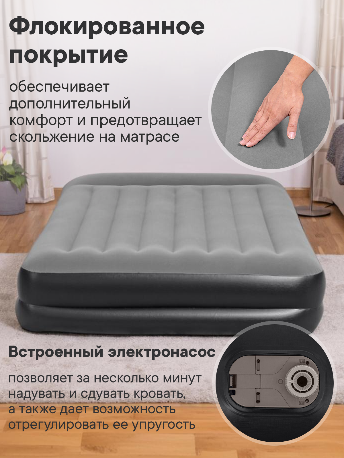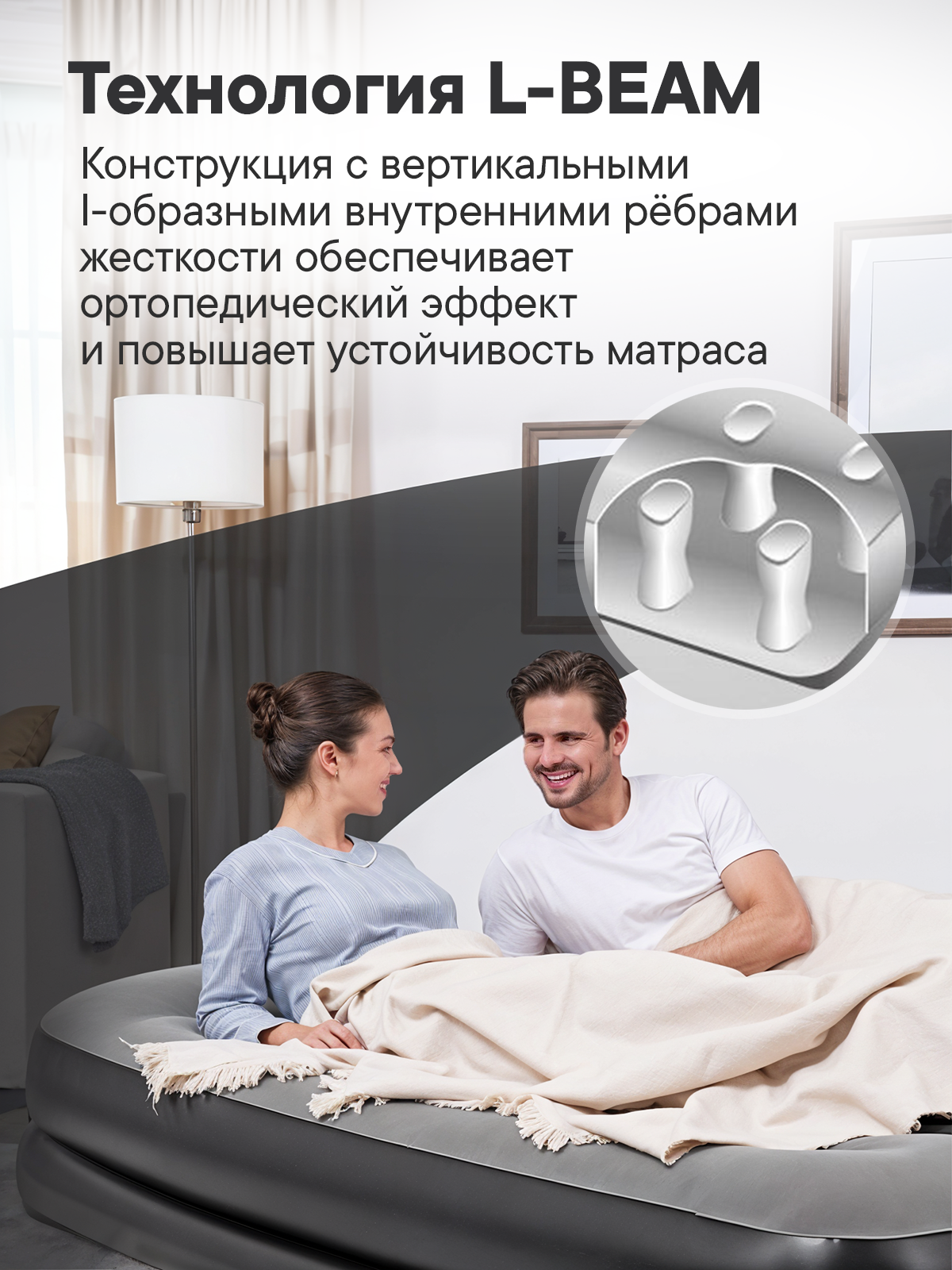 матрас-кровать надувная с технологией L-Beem, время накачивания 4 мин