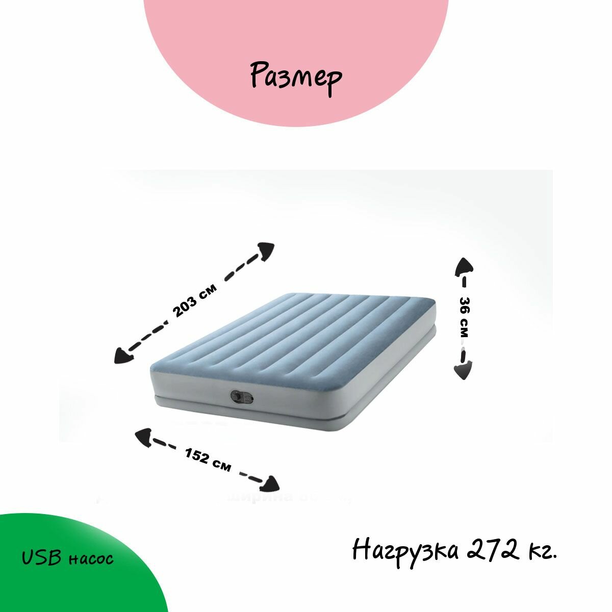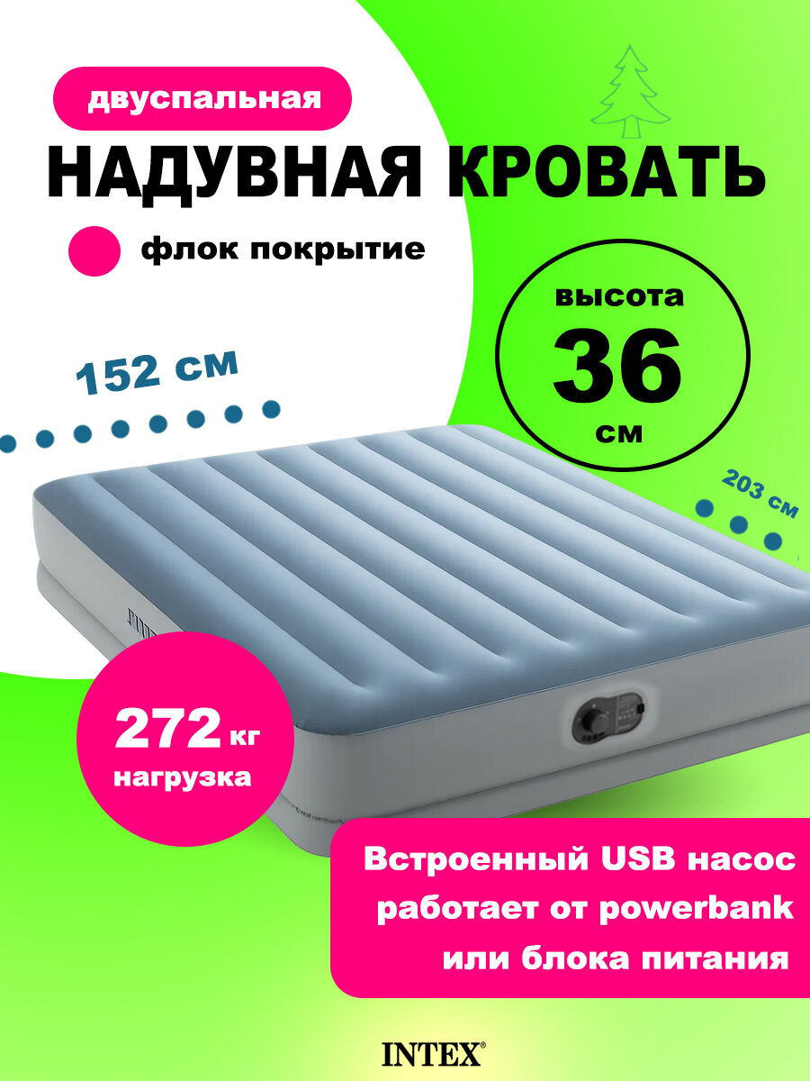 Надувной матрас Intex 64159 двуспальный 152х203х36см со встроенным насосом USB 5V: сравнение цен, характеристики, фото, актуальное наличие и цены.