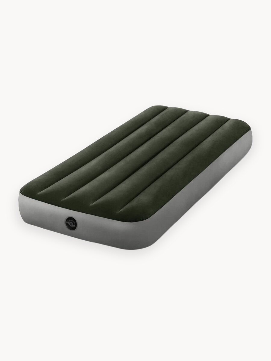 Матрас имеет однокамерную конструкцию с поперечными перегородками из тысяч высокопрочных полиэфирных волокон, выполненными по новейшей технологии FIBER-TECH TECHNOLOGY, обеспечивающей повышенный комфорт и стабильность. В отличие от обычных кроватей, суперпрочные волокна не изнашиваются со временем. Поверхность этой кровати подстраивается под ваши личные предпочтения по степени жесткости, чтобы сделать сон потрясающим. Надувной матрас изготовлен из сверхпрочного, двухслойного ламинированного ПВХ. Плюс надувного матраса - это быстрая организация спального места и комфортного отдыха для Вас или ваших желанных гостей. Матрас имеет клапан усовершенствованной конструкции, позволяющий её быстро надувать, и так же быстро сдувать. В сложенном виде её можно с лёгкостью переносить без посторонней помощи. Модель: intex 64106 Prestige Downy Fiber-Tech без насоса Особенность: изготовлен по новейшей технологии FIBER-TECH TECHNOLOGY Размеры: 76 х 191 х 25 см Максимальная нагрузка: 136 кг Цвет: верх - темно-зеленый, бока - темно-серый Вес: 2. 04 кг Габариты упаковки: 9 х 24 х 31 см